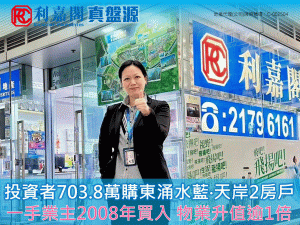 投資者703.8萬購東涌水藍‧天岸2房戶 一手業主2008年買入 物業升值逾1倍