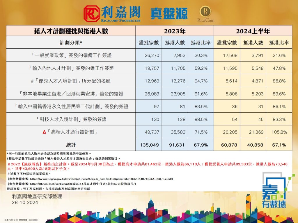 🎯 「高才通」計劃自2022年底推出至今(截至2024年9月30日),獲批宗數共81,463宗,而抵港人數為66,110人,