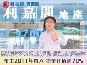 投資者323.8萬購屯門市廣場2房戶 業主2011年買入 物業升值逾70%