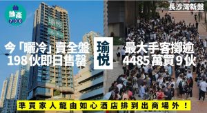 瑜悦開賣|全盤198伙即日售罄 最大手客擲逾4485萬買9伙|長沙灣新盤
