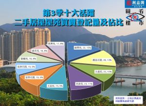 利嘉閣地產研究部主管陳海潮表示,受惠於房委會今年上半年放寬居屋擔保期及「白居二」批證安排,次季二手居屋登記量曾一度躍升至近年高位;然而居屋業主洞悉市況好轉,叫價轉趨硬朗,在首批有急切需求的居屋客陸續購入心儀居所後,市場氣氛稍微降溫,致使第3季二手居屋未能延續升勢,表現回軟。根據土地註冊處最新數據顯示,今年第3季全港錄得1,241宗居屋二手買賣登記(包括第二市場及自由市場),較次季的2,174宗按季急瀉43%,按季跌幅為近20個季度(即5年)最多;至於期內成交總值錄約50.11億元,較前季的86.22億元,按季同步萎縮42%,但登記量及總值仍為近5季次高。