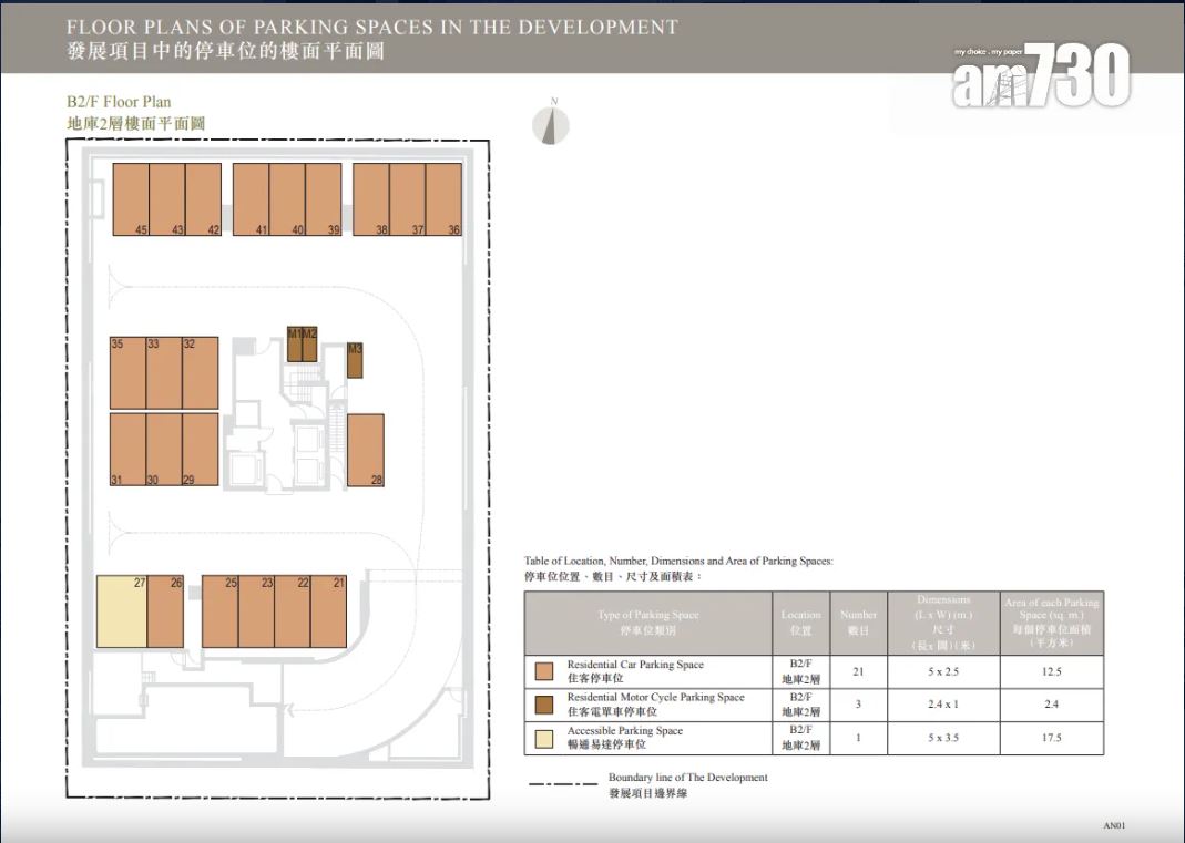 地庫2層設有38個住宅停車位及4個電單車停車位,住宅與住宅車位比例約為2:1。會所位處項目1樓全層,設有特大落地玻璃設計,設有室外游泳池、健身室、多用途宴會室、共享空間、音樂室及娛樂室等。