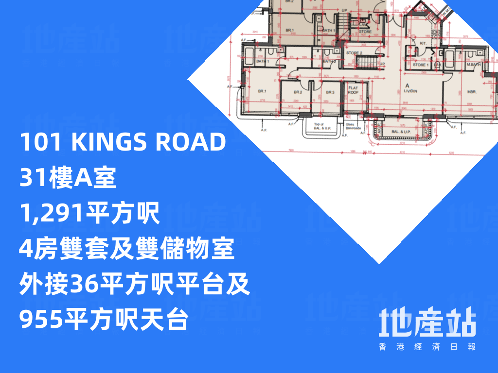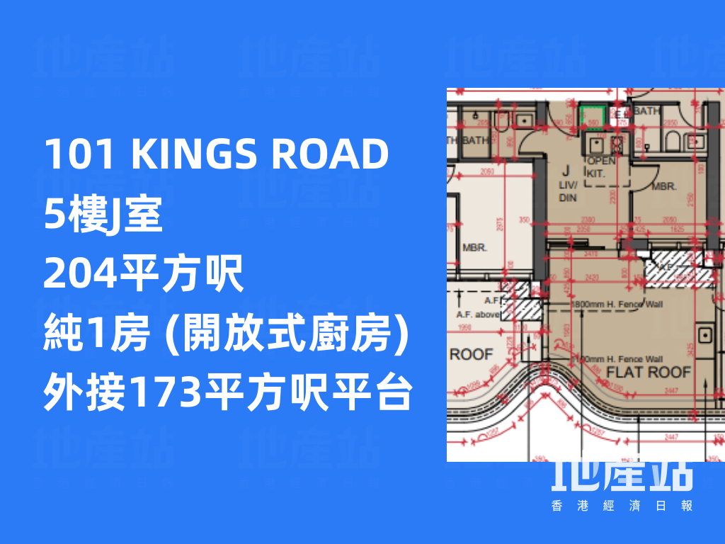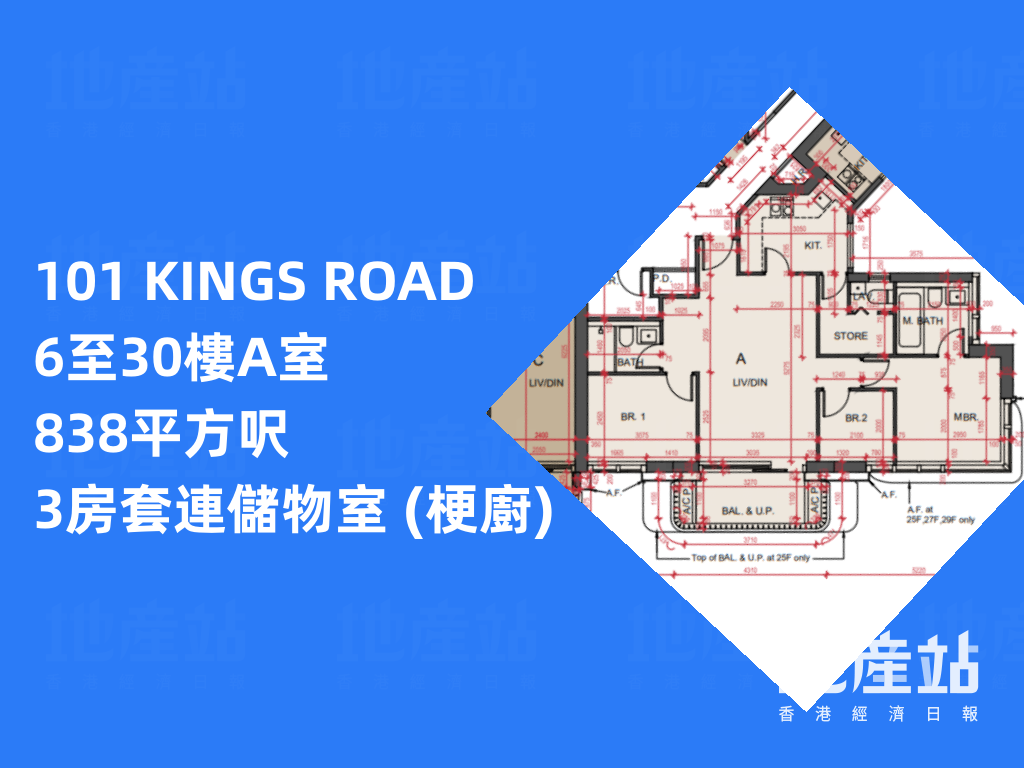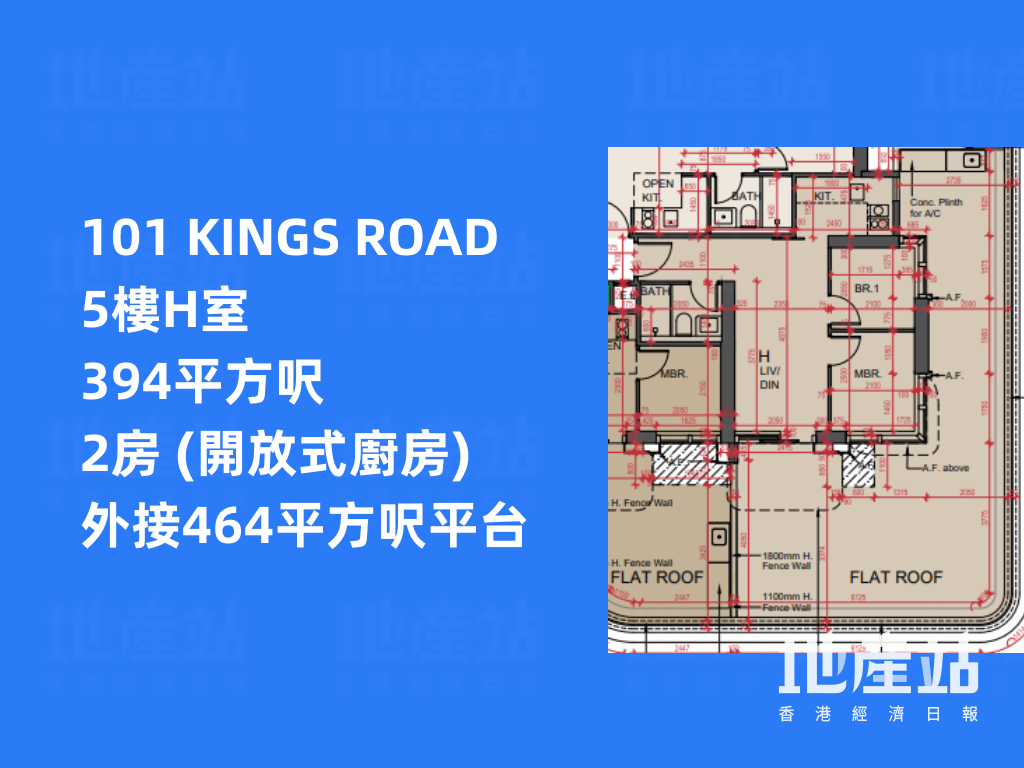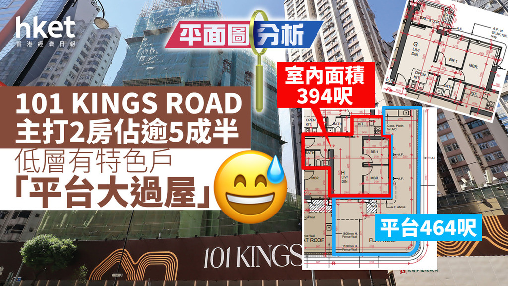 平面圖分析|101 KINGS ROAD 主打2房佔逾5成半 低層有特色戶「平台大過屋」