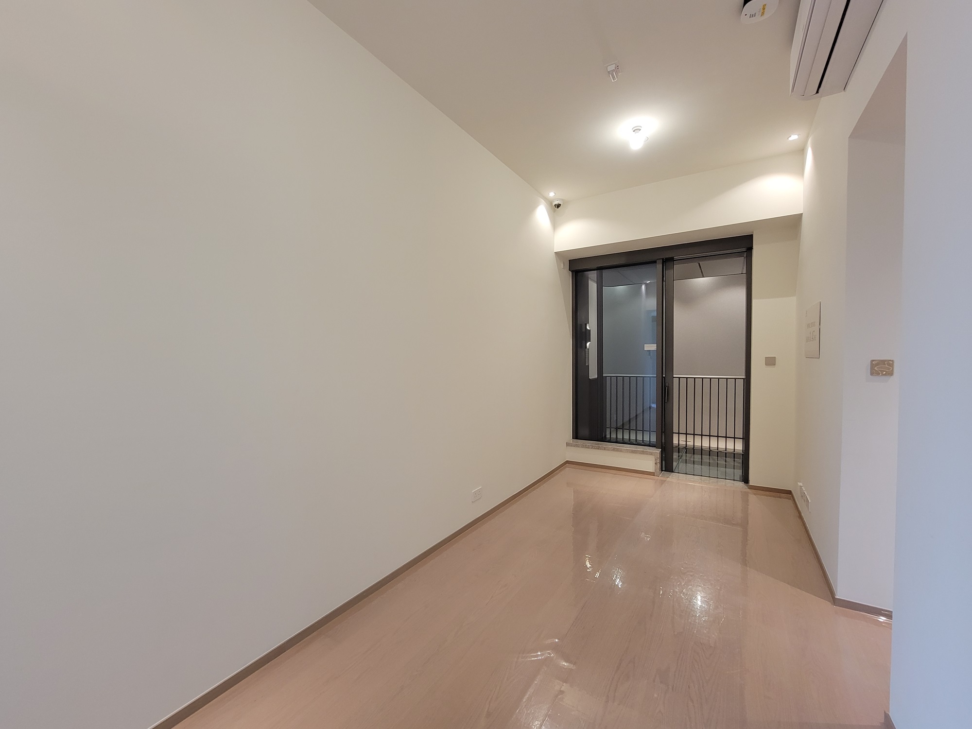 露台玻璃趟門可以迎納自然光及城市景觀,室外露台精心設計巧妙地將工作平台、露台、冷氣機平台三合為一,配備落地玻璃趟門,引入城市景觀的同時又提供良好通風效果;圍欄設有隱藏式晾衣架,增添實用性。露台流線型的設計配合灰麻石紋理塗料外牆,外牆香檳金色飾面的露台圍欄盡顯低調奢華。