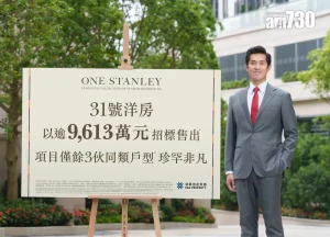 鄭智荣指,「ONE STANLEY」全盤同類洋房戶型只餘3伙,更顯珍稀;而項目迄今累沽14伙,總成交金額逾12.15億元。