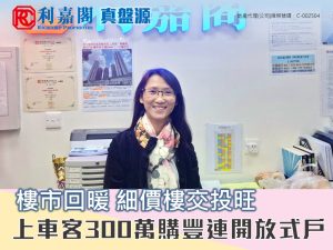 陳氏指,新買家為外區上車客,尋覓優質單位近半年,眼見近期樓市回暖,怕錯過低位入市時機,遂加快買樓決定,經利嘉閣真盤源平台覓得上址,並聯絡代理睇樓。客人認為單位簇新,且議價空間吸引,決定洽購。業主原以325萬元放盤,終以300萬元易手,折合實用呎價11,858元。