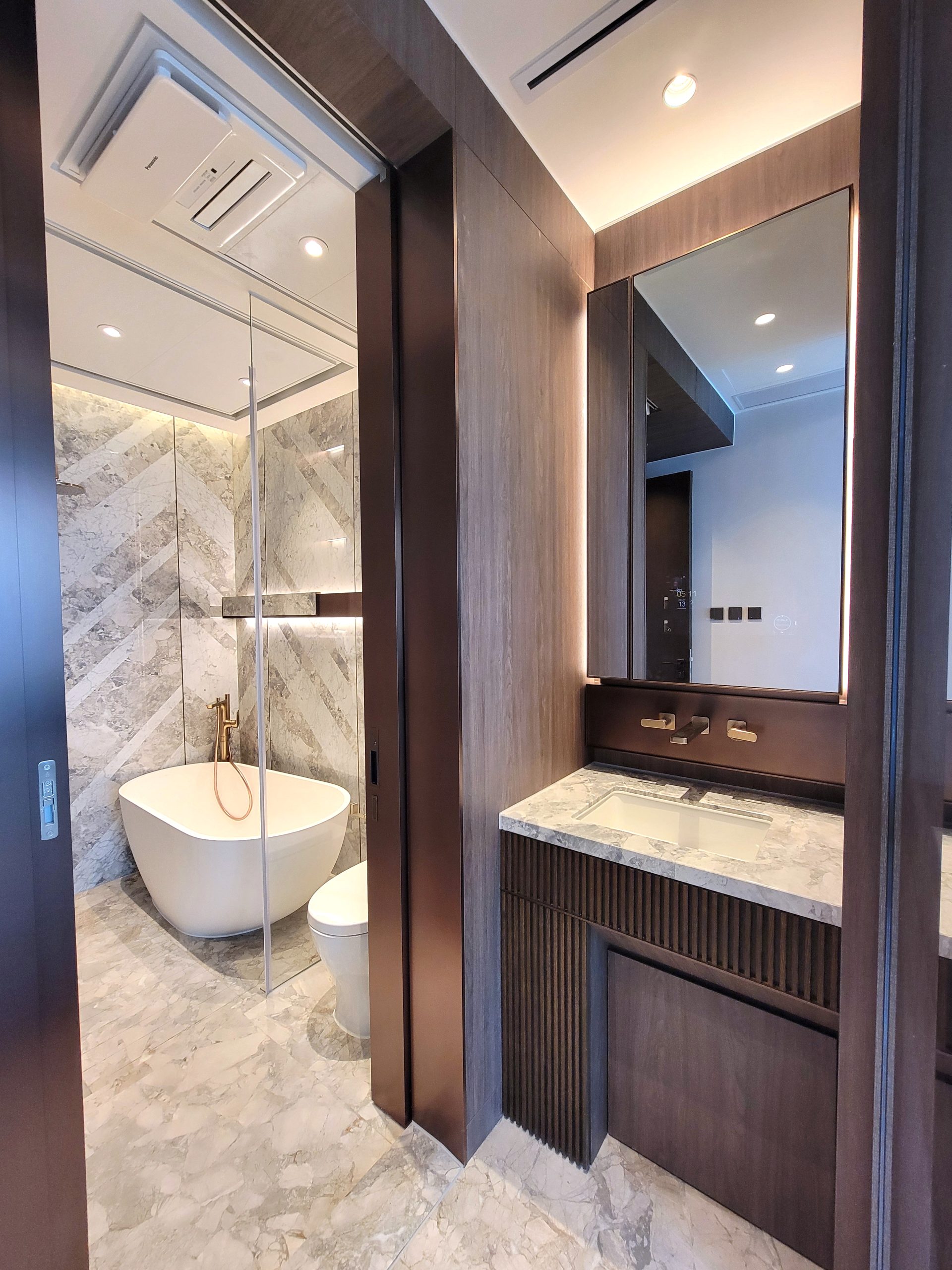 四間睡房間隔方正,寬敞實用。主人睡房放置雙人床後仍可三邊落床,空間十足,配備意大利Poliform雙面Display Closet,分隔主人睡房與衛浴空間,營造空間流動感。單位更精選英國Claybrook獨立浴缸、美國衛浴品牌Kohler、意大利Cristal化妝品雪櫃,以及HKT Smart Mir­ror等。