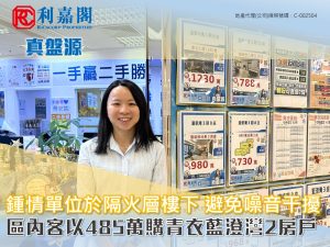 利嘉閣地產葵青-青衣機鐵站分行助理分區市務經理蕭浩麟(Kenny)表示,該行資深客戶董事邱嘉殷(Rivka)日前促成青衣藍澄灣5座中層H室的二手成交個案,單位實用面積約451方呎,屬2房間隔,望樓景。