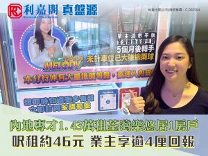 李氏表示,新租客為內地專才,因工作原因,計劃在荃灣區租住單位,經利嘉閣真盤源平台覓得上址,即聯絡代理睇樓。客人滿意單位層數及間隔,可享開揚山景,加上鄰近公司,遂決定洽租。業主原以14,500元放租單位,最終獲輕微議價,以14,300元租出,折合實用面積呎租約46元。