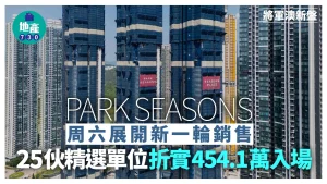 PARK SEASONS周六展開新一輪銷售 25伙精選單位折實454.1萬入場|將軍澳新盤