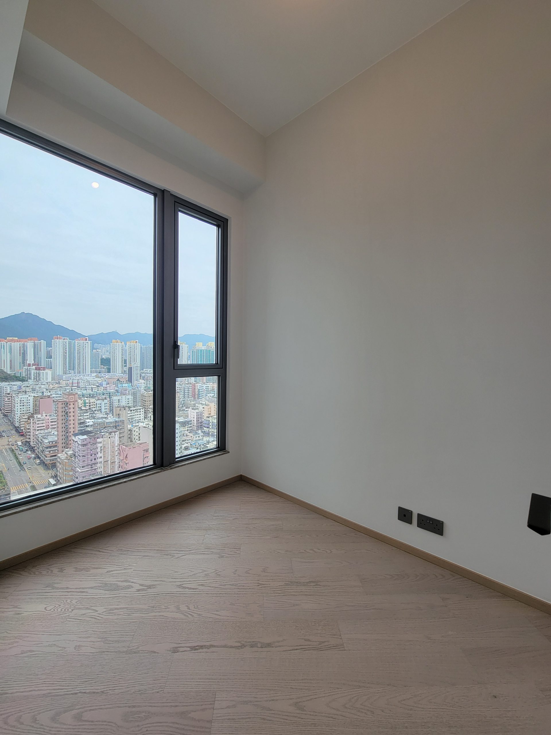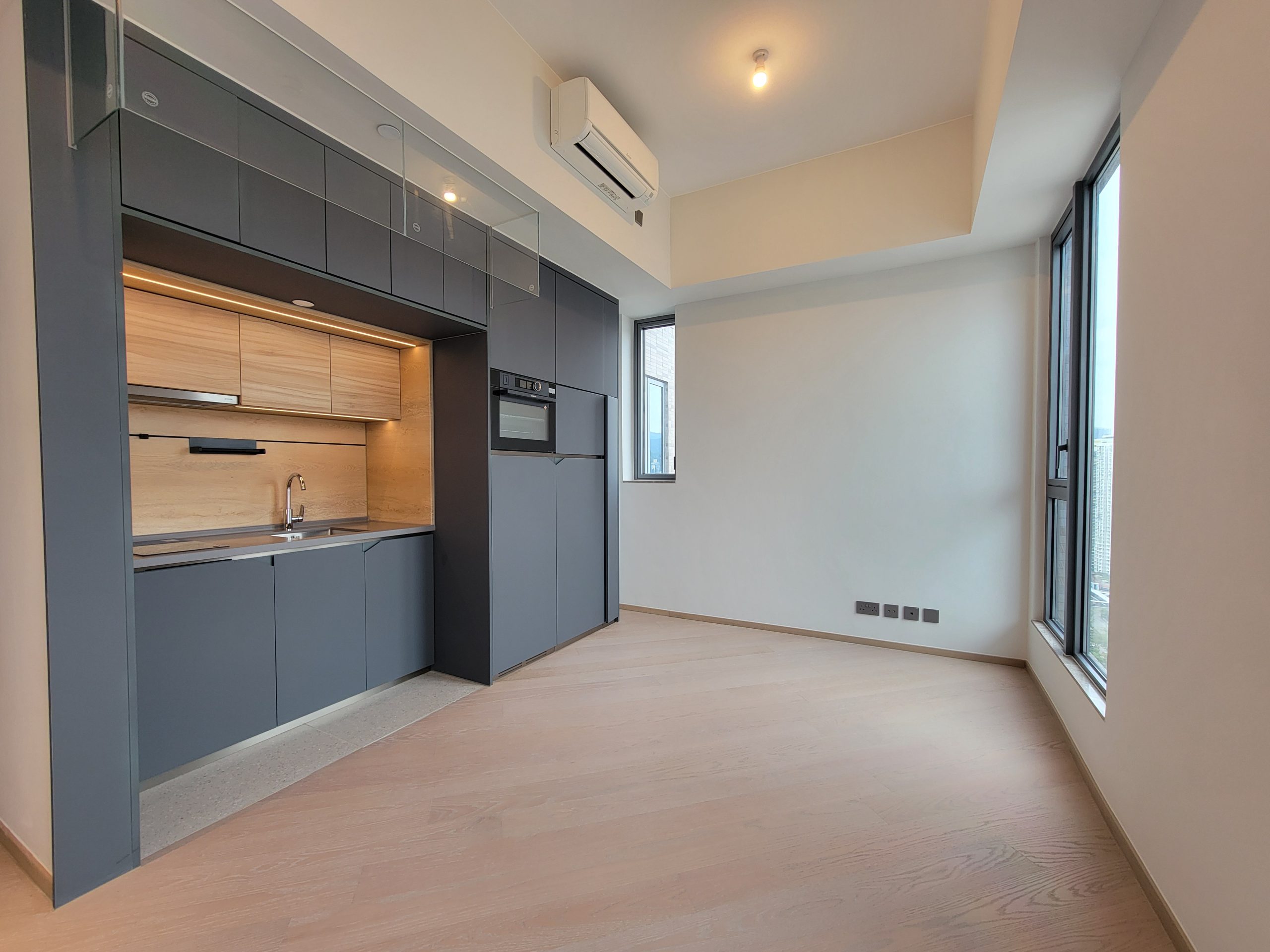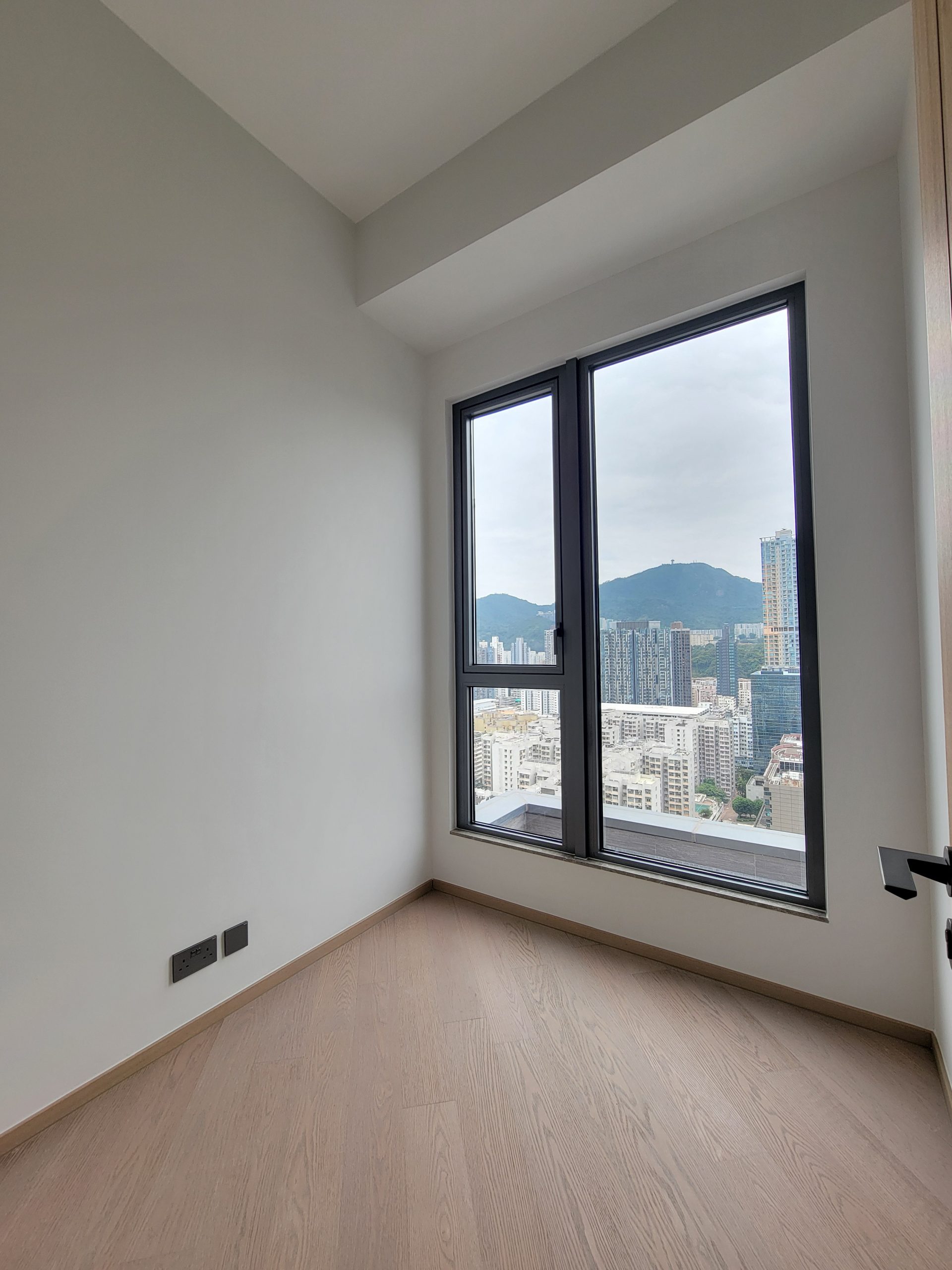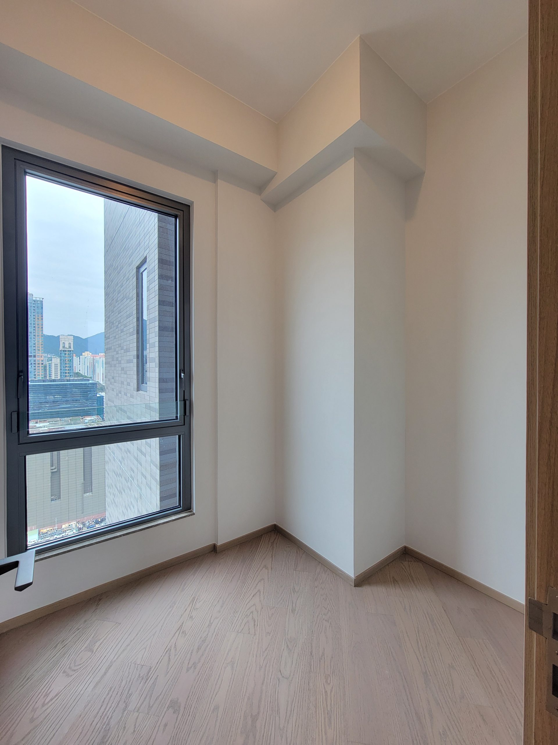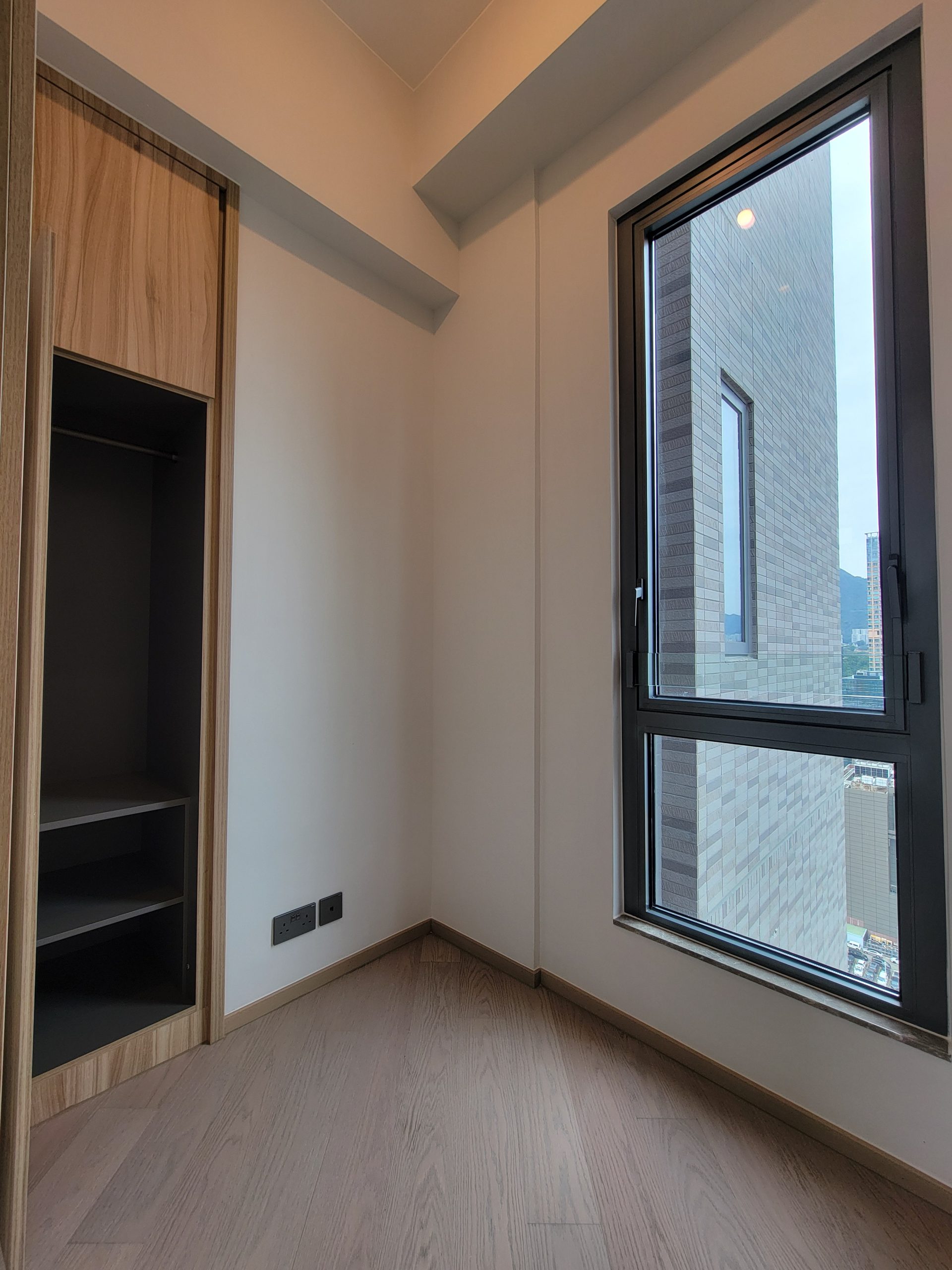 27樓F室採一房間隔,實用面積439方呎,層與層之間高3.5米,單位門口玄關配備高身貯物櫃。客飯廳長約4.8米,闊約2.4米,間隔分明,傢俱佈局靈活多變,客飯廳連接38方呎露台連工作平台,可從客廳直接眺望維港海景。