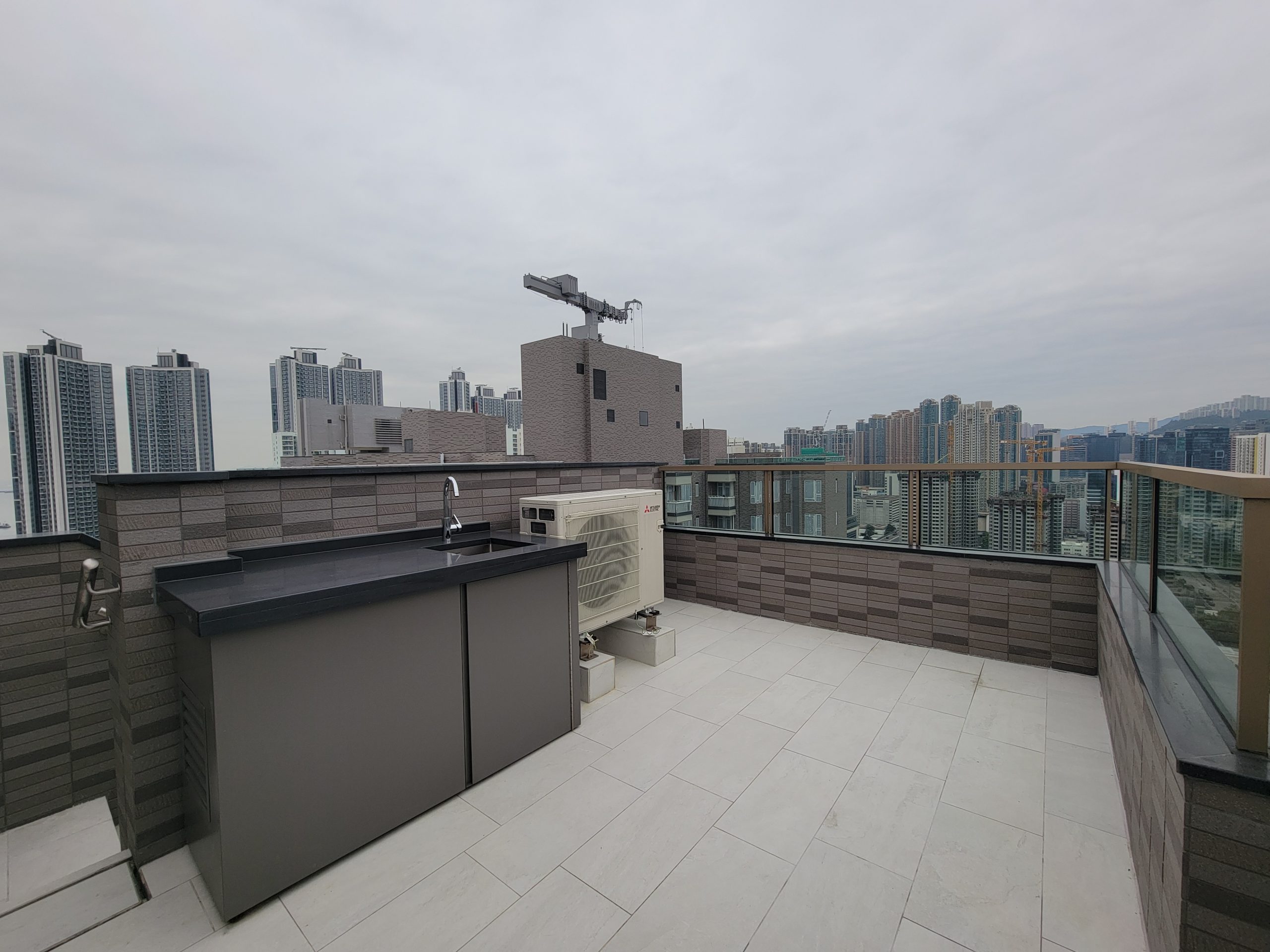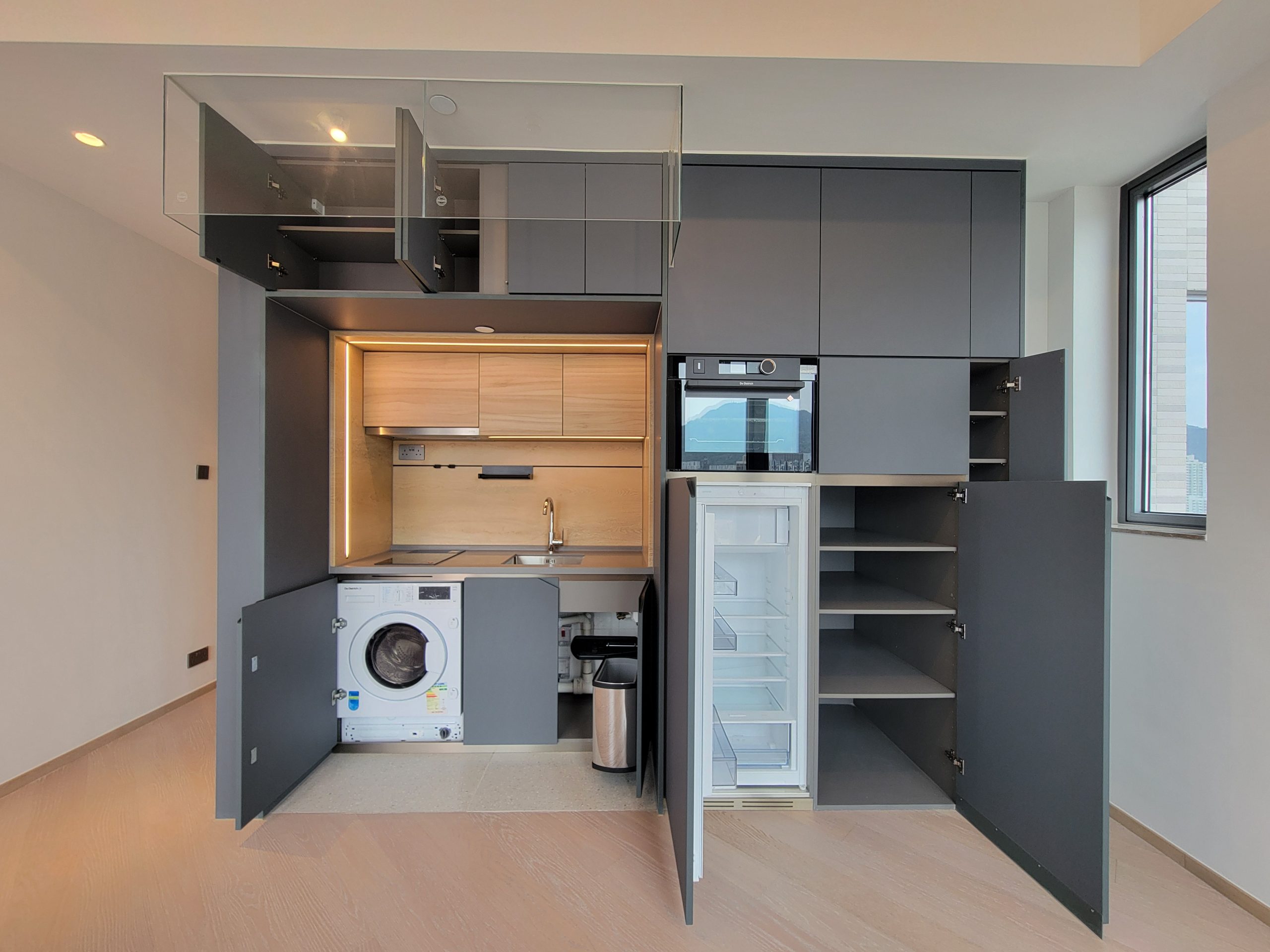 開放式廚房配備一系列著名電器品牌家電,包括法國皇室御用品牌De Dietrich煮食爐、蒸焗爐、洗衣乾衣機;歐洲家電品牌 Gorenje 拉趟式抽油煙機及雪櫃。開放式廚房設有高身儲物廚櫃,提供大容量的收納和寬敞烹飪空間。單位內置私人樓梯連接天台戶外空間,天台面積394方呎,方正實用,設有盥洗台。