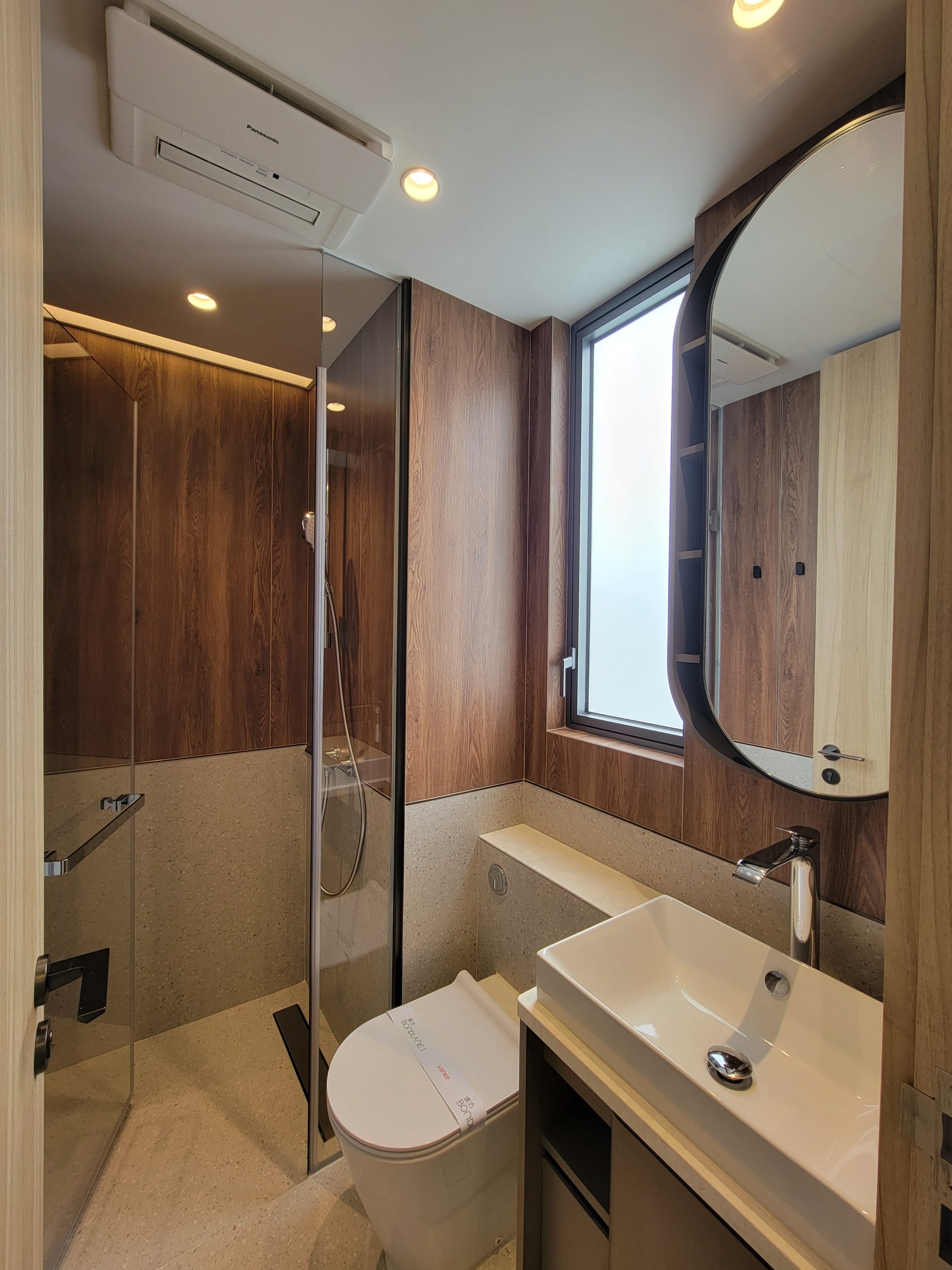 現樓示範單位包括27樓A室,實用面積547方呎,三房間隔。單位層與層之間高3.5米,空間感十足。單位門口玄關配備高身貯物櫃,提供充裕的收納空間。特大客飯廳長約4.4米、闊約3.1米,間隔方正實用;客飯廳外接面積38方呎的露台連工作平台,露台採雙門設計,可從客廳直接眺望維港海景。單位選用韓國Hyundai視像電子門鎖,設有高清顯示屏代替一般貓眼功能,並自帶門鈴及天氣預報。