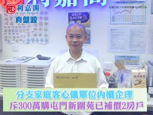 陳氏指,新買家為同區分支家庭客,早前經利嘉閣真盤源平台搵樓,經代理介紹上址,即約睇樓。客人認為單位內櫳企理,對樓層及坐向皆理想,且熟悉區內環境,遂決定洽購。業主原以350萬元(已補地價)放售單位,議價後,以300萬元(已補地價)市價成交,折合實用面積呎價約7,481元。