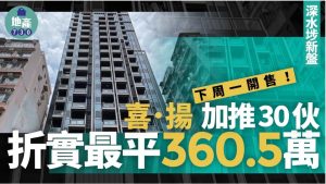 喜.揚加推30伙 折實最平360.5萬 下周一開售|深水埗新盤