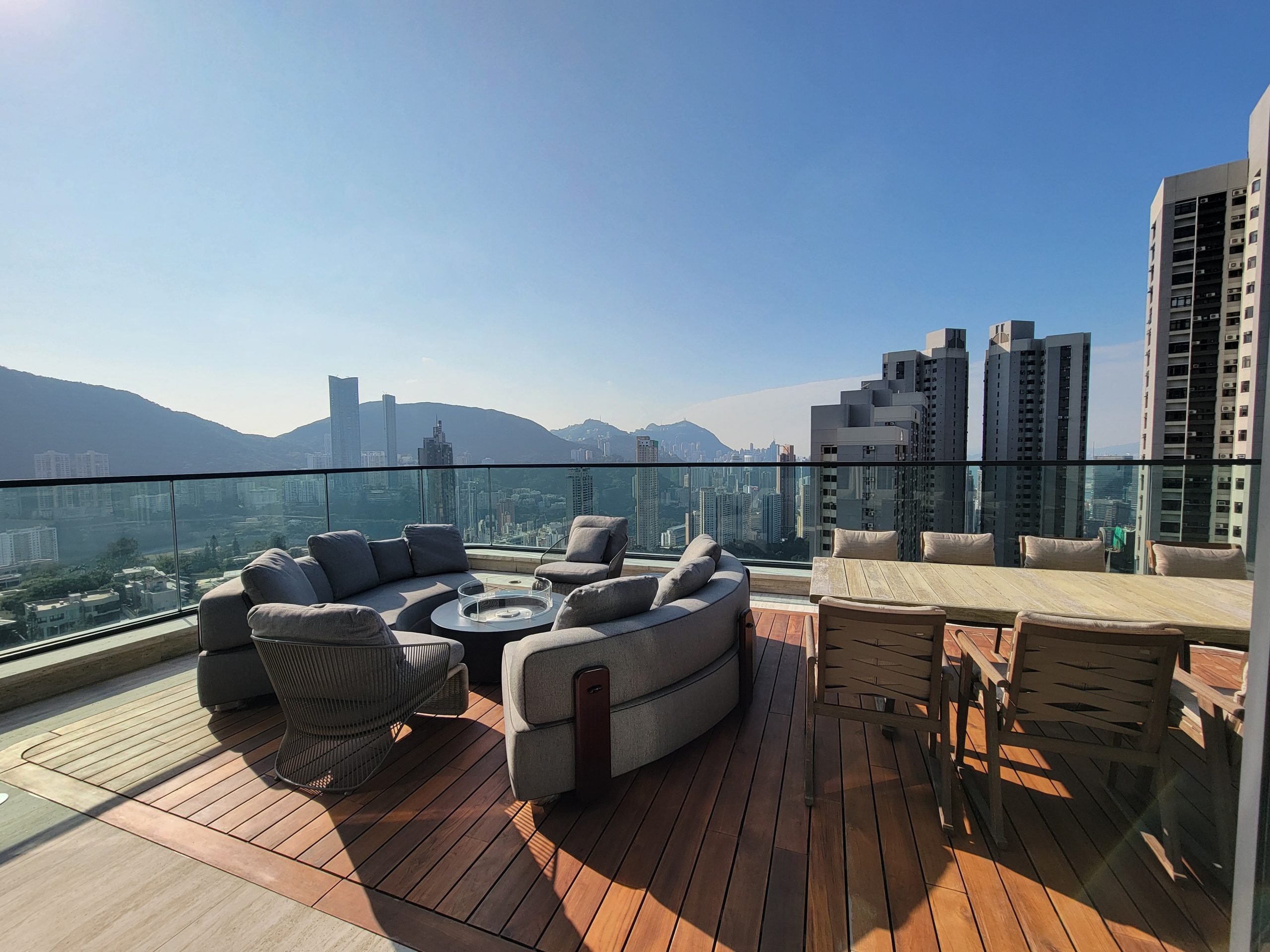 上甲板位於整個物業的頂層位置,屬單位天台部分,面積廣達1,103方呎,設有逾12米長的室外私人泳池和柚木日光浴平台,供戶主隨時隨地躺在上面曬太陽,又或成為觀星的露天劇場,更重要是可以在此飽覽整個渣甸山景致。