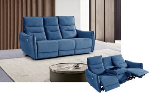 海軍藍色的MARINE布藝電動彈鉸梳化,特選美國品牌TWEETIE FTW LiveSmart布料,除防潑水功能外,選用獨特紗線及工藝提升易去污效果,加上耐磨、耐刮加工,絕對是有「毛孩」、小孩家庭之選!