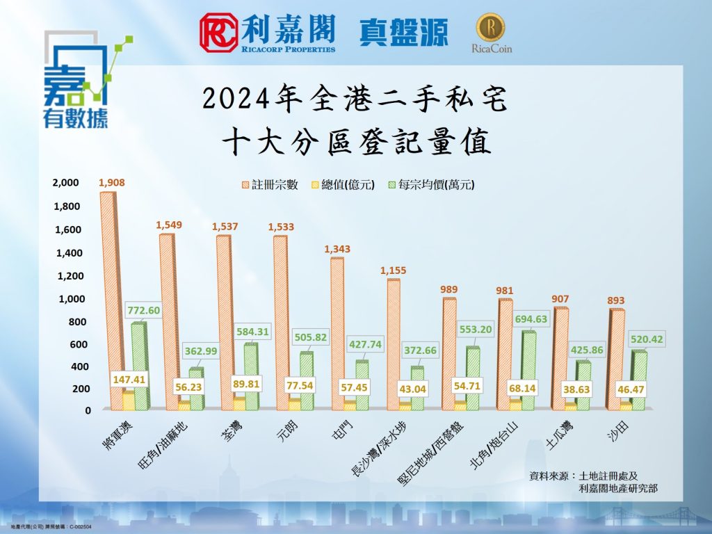 🎯 值得注意的是,將軍澳區無論是在宗數、涉及總金額及平均每宗價格都是十大交投最旺地區之冠,反映區內供應多、交投多,而且亦屬價格普遍較高的優質物業。