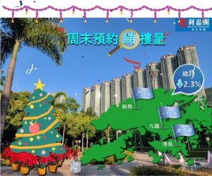 至於,港島區8個指標屋苑於本周末暫錄175組客戶預約睇樓,與上周持平。利嘉閣地產嘉亨灣及杏花區助理營業董事劉信文表示,聖誕新年節日氣氛濃厚,學校假期開始,外遊度假客人眾多,區內二手屋苑預約睇樓量受壓,客人暫時「無心戀戰」;至於本港銀行跟隨美國第三度減息,相信對樓市有利好作用,暫時亦未見放盤業主叫價轉趨企硬,相信待長假過後的新一年,區內二手睇樓及交投方會重回正軌。