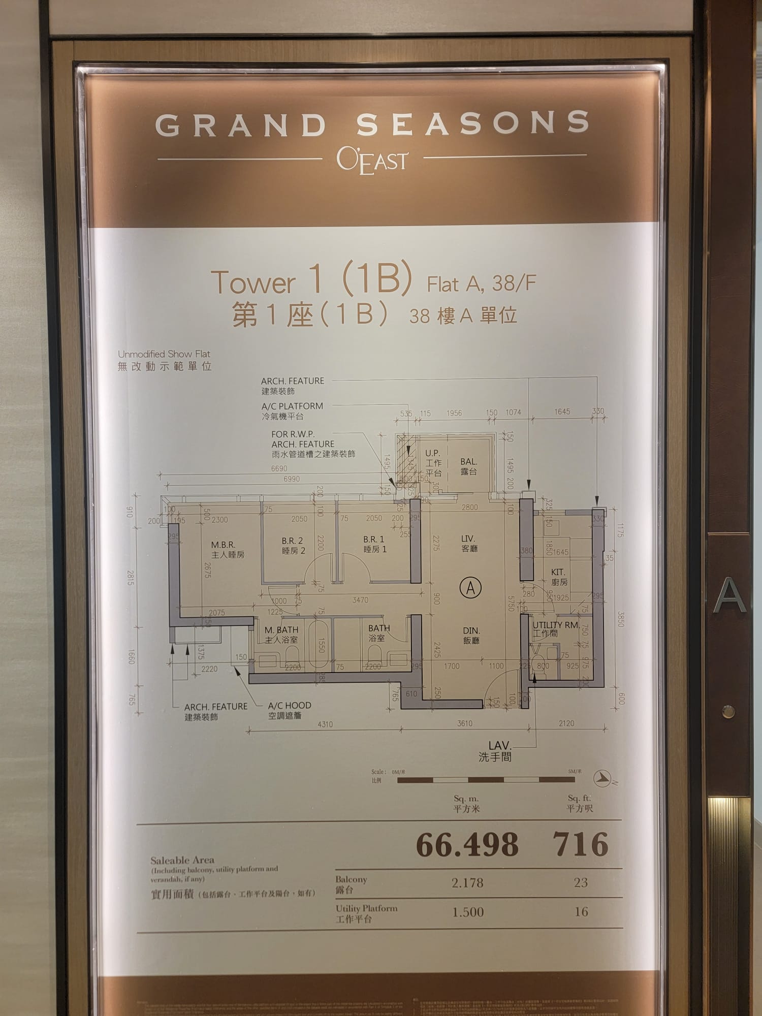 會德豐地產與港鐵合作發展的將軍澳日出康城第12C期「GRAND SEASONS」首度推出「SEASONS」系列三房樓王交樓標準示範單位,以第1B座38樓A室為藍本改造,實用面積716方呎,三房一套連工作間連洗手間間隔。