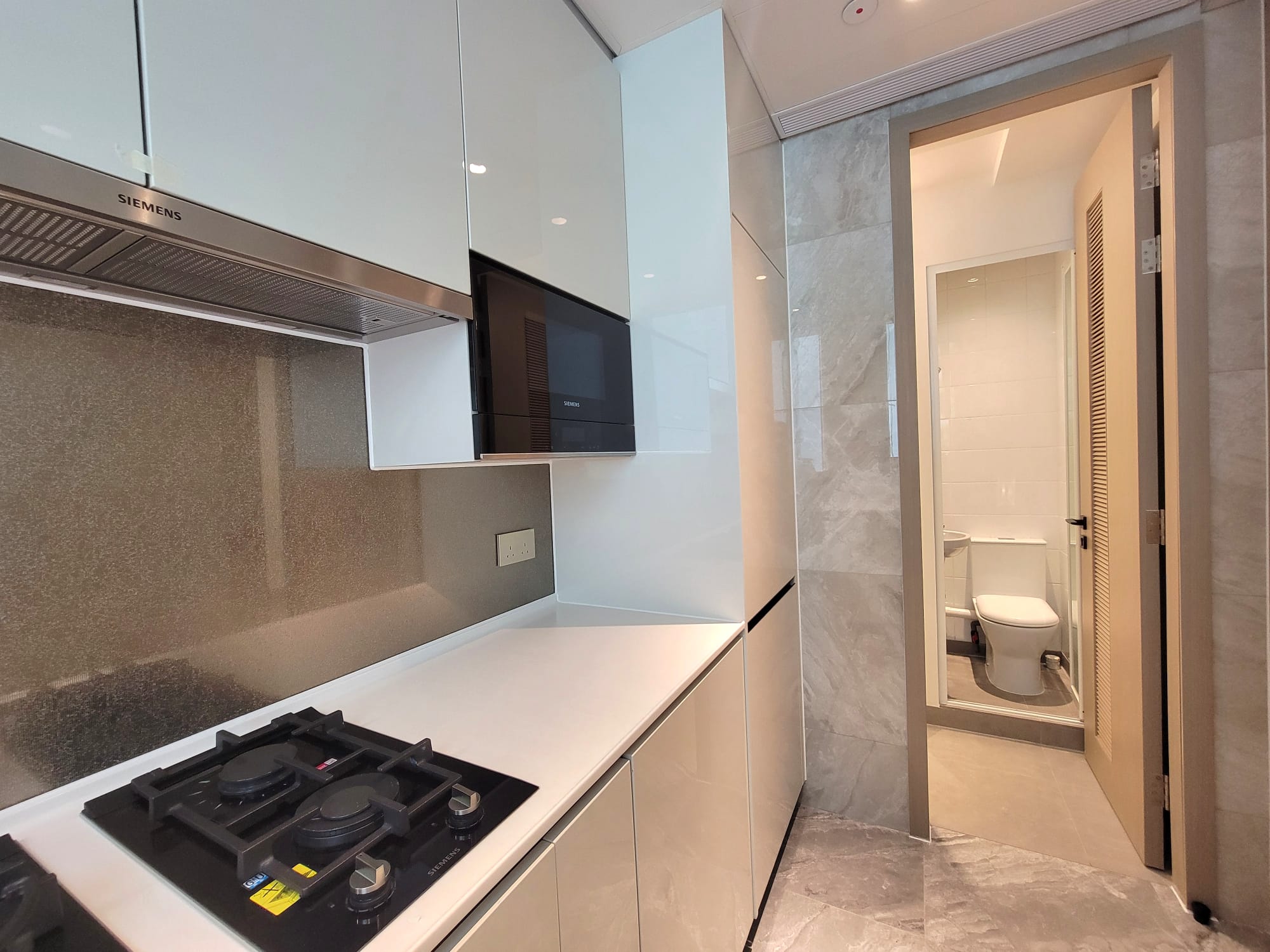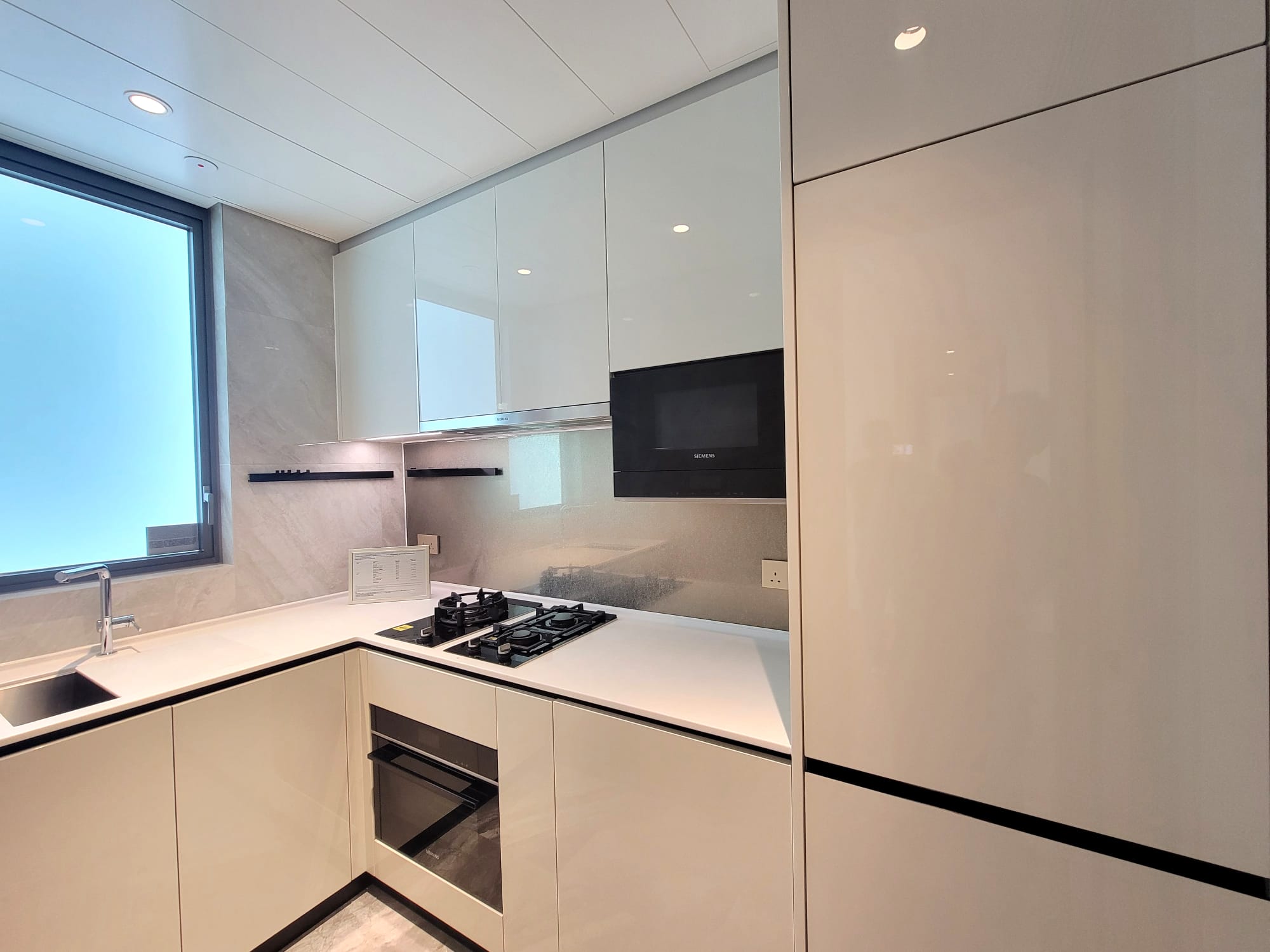 單位不設玄關,客飯廳間隔分明,空間方正實用,工作平台與露台合併,輕鬆打造戶外休閒體驗,獨立梗廚設備齊全,配備德國著名品牌SIEMENS西門子雪櫃、2合1洗衣乾衣機,炒鑊用及雙爐頭煤氣煮食爐、蒸焗爐、微波燒烤爐及抽油煙機,生活煮食所需、一應俱全,尊設工作間連洗手間,用途靈活多變。
