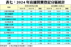 鄭得明又認為,縱使店舖來年仍處低水整固橫行亦不失為一種機遇,意味目前租金水平相對合理,可為新興行業及創新品牌的進駐提供良好契機。反之業主也可趁機調整租務策略,引入更多體驗式商戶,提高商場和街區的吸引力,以增加人流及銷售額。鄭氏對2025年店舖市道感樂觀,預期全年店舖買賣登記量可重上1,000宗水平,按年升約6%,而涉及登記總值也料相應增加7%,至約250億元。