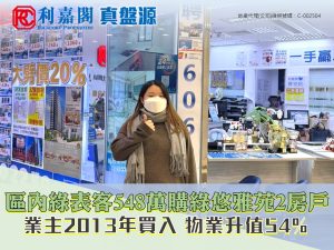區內綠表客548萬購綠悠雅苑2房戶 一手業主2013年買入 物業升值54%