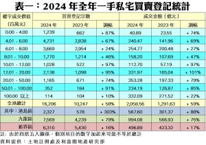 利嘉閣地產研究部主管陳海潮表示,受撤辣、中央救市、減息及放寬按揭連環利好消息推動,加上發展商維持以低價搶灘,令一手私宅在去年交投應聲彈起,登記量即創3年新高。根據利嘉閣地產研究部綜合土地註冊處數據,2024年全港共錄一手私宅買賣登記16,206宗,較2023年的10,247宗大升58%,連升兩年,兼創近3年高位。期內成交總值錄得2,058.56億元,按年同步增長59%,亦為近3年最多;而去年每宗一手私宅登記平均售價約1,270.25萬元,按年微升0.8%,也是近3年高位。
