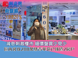 減息刺激樓市 細價盤買少見少 區內客以280萬購青華苑已補價2房戶