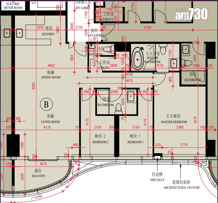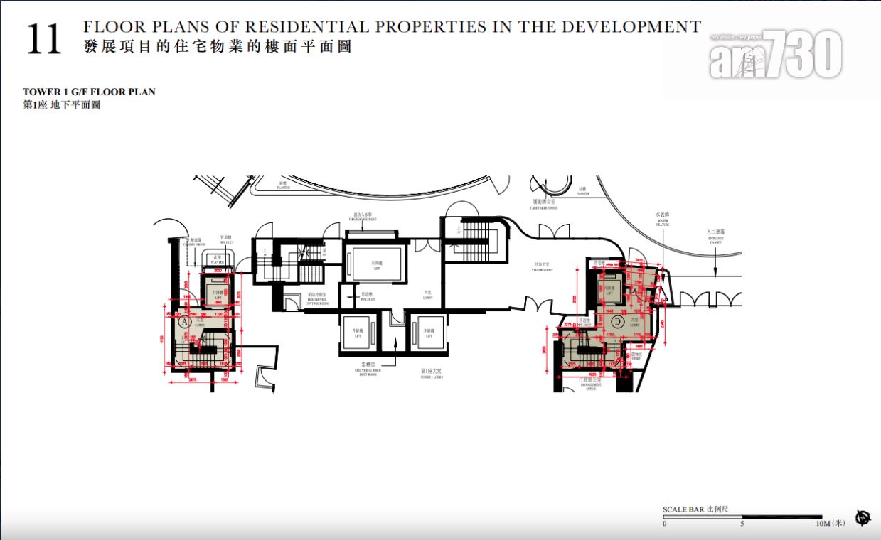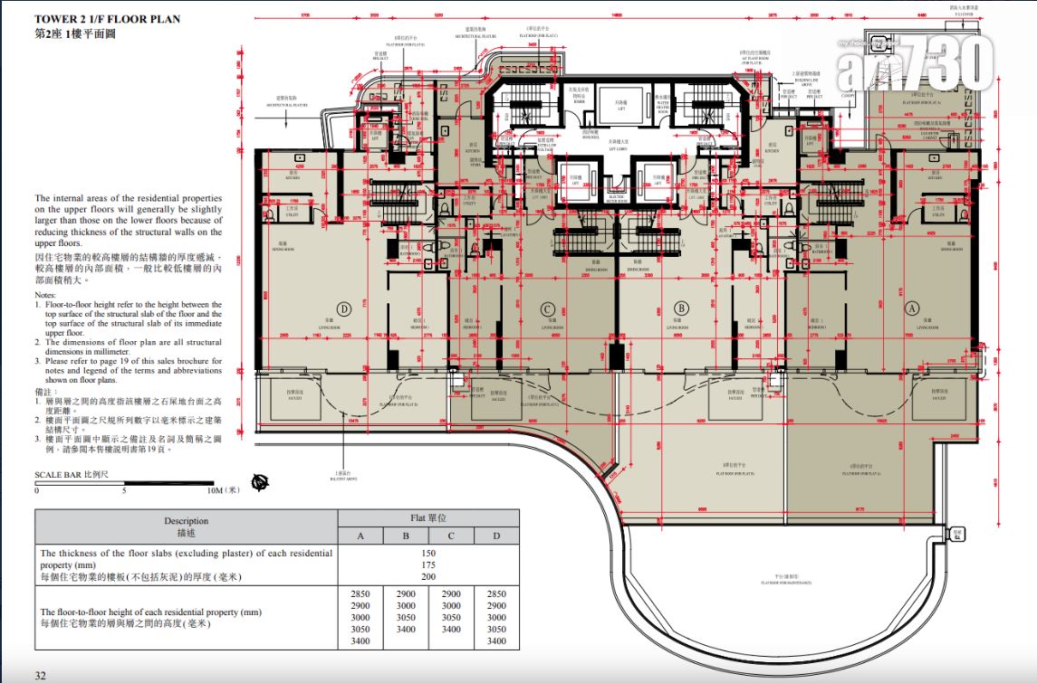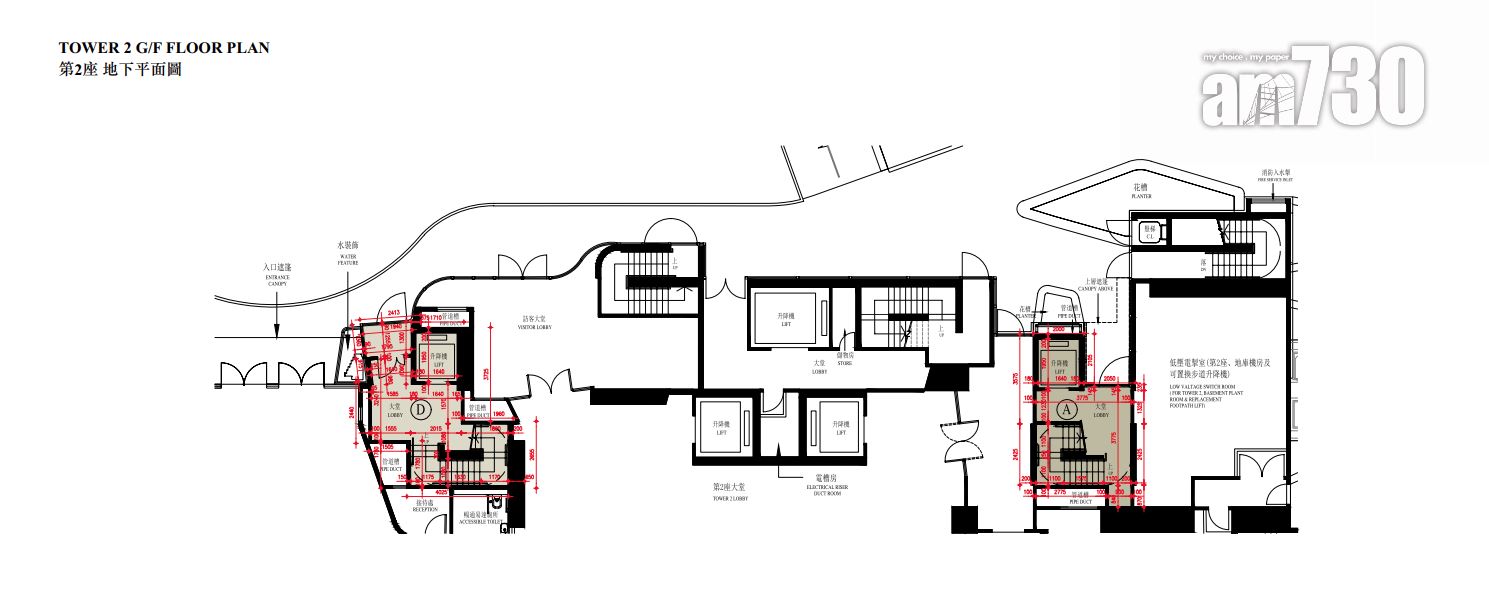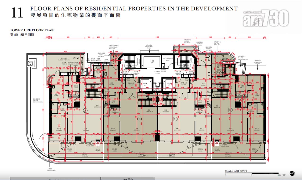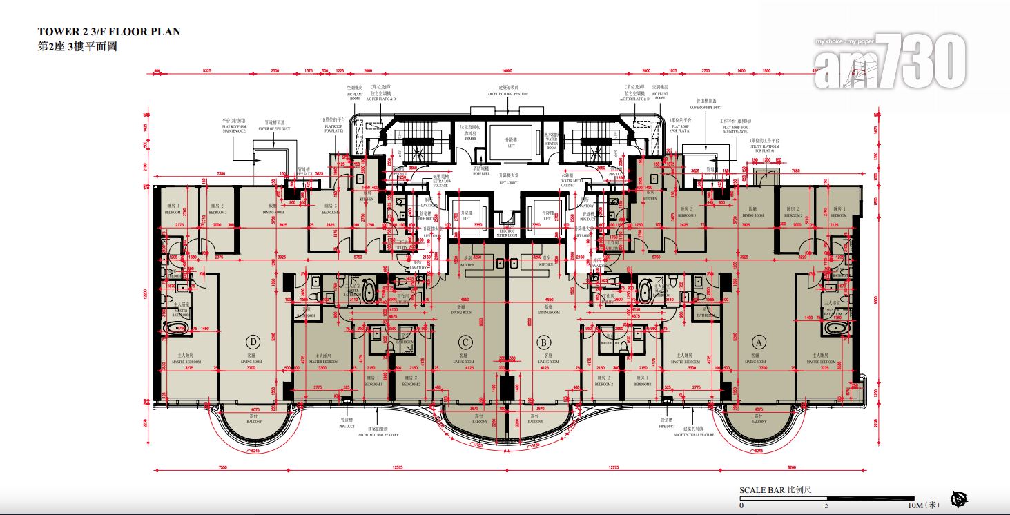 至於全盤面積最細單位包括第2座3至16樓B室及C室,三房間隔,實用面積1,089方呎;全盤面積最大單位為第2座19樓及20樓A室,頂層複式五房間隔,附設私人升降機大堂,實用面積6,288方呎,連1,688方呎天台,配備游泳池。