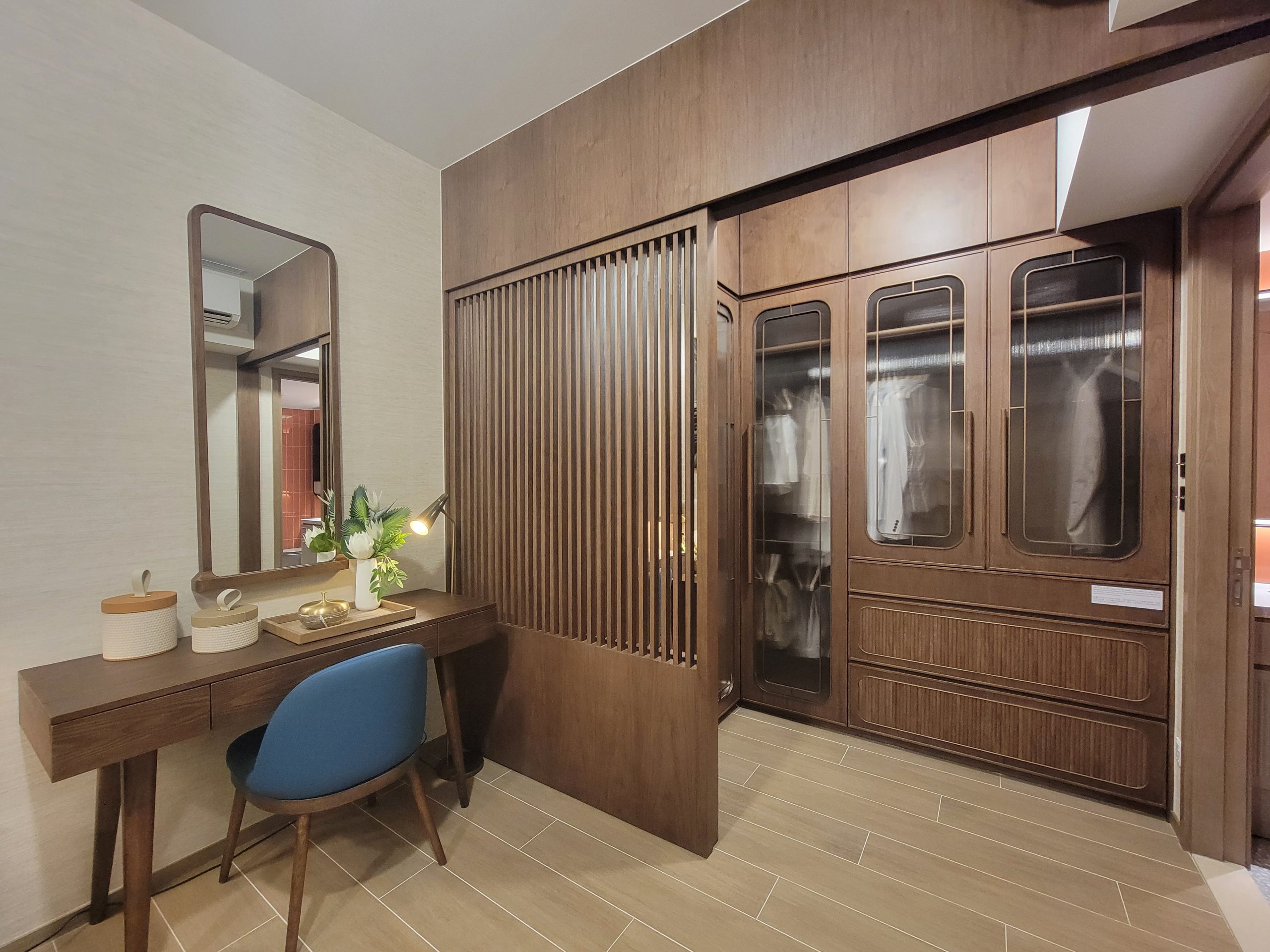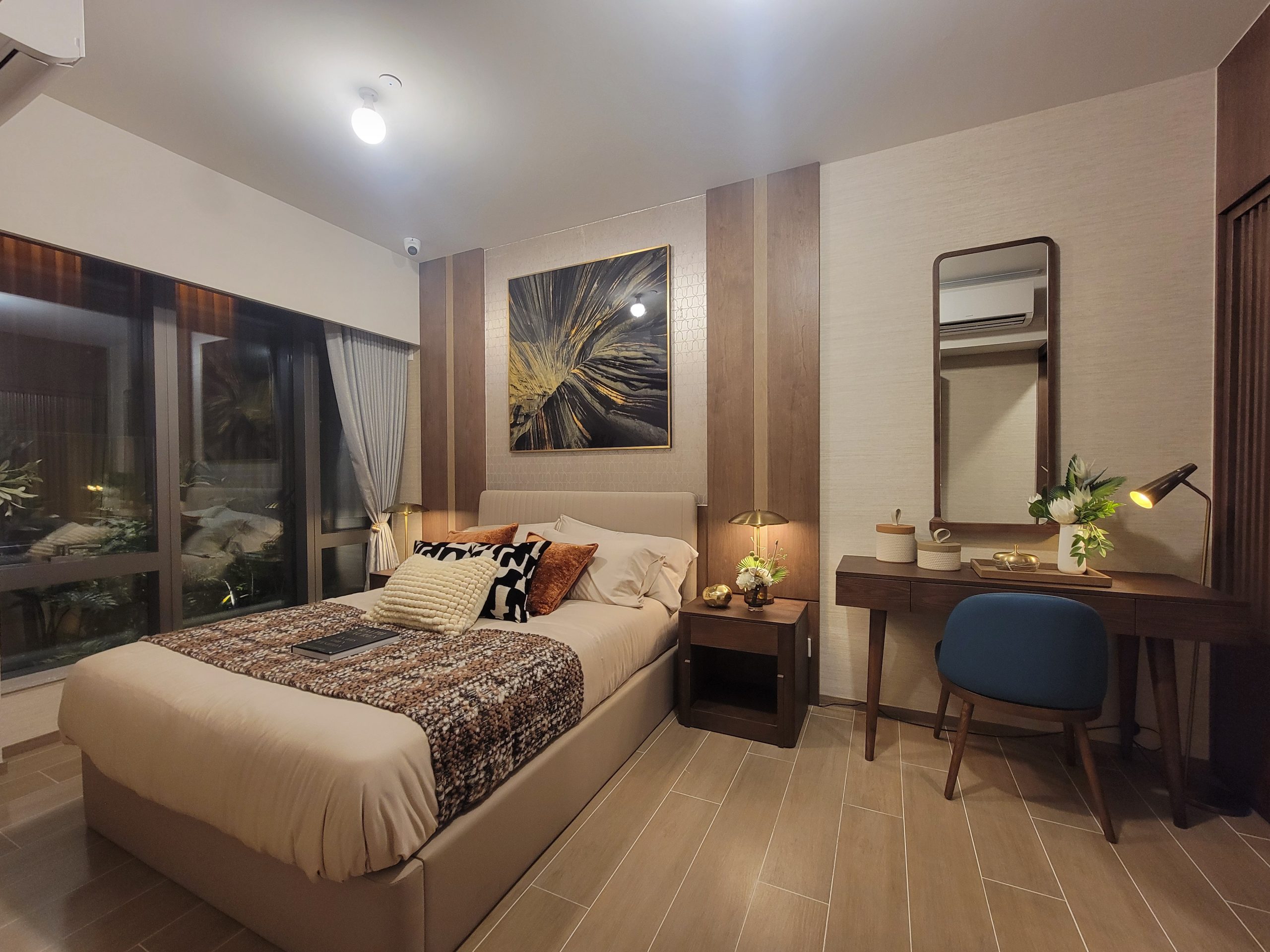 單位更設有集3大功能的Smart Home智能家居裝置,住戶可以透過手機應用程式輕鬆操控屋內電燈及冷氣開關。單位客廳、廚房及睡房預先設置WIFI無綫網路存取點,打造暢通網絡體驗。此外,亦配有額外電源接駁位置讓住客安裝智能窗簾,提供便利生活體驗。主人睡房設計舒適愜意,以酒店式設計為靈感,營造賓至如歸的舒適體驗。房內設有衣櫃組合,並配備趟板,住戶可以隨時關上,保持空間的整潔和私密性,盡享奢華舒適私人空間。