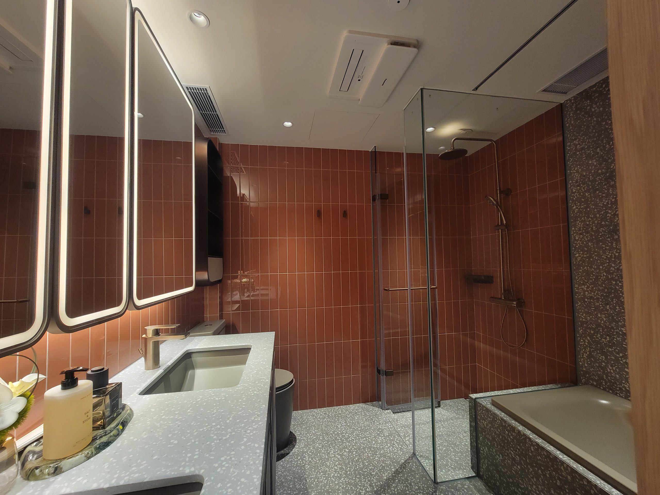浴室設有多用途鏡櫃STATE MIRROR,可以放置風筒及小型家電,雙插座設計同時兼備USB和USB-C插頭;STATE MIRROR提供大量儲物空間,方便住戶收納浴室用品,鏡面周圍設有LED燈以提供更佳照明效果,方便化妝整理儀容。浴室精心搜羅多款知名品牌用具,包括KOHLER特別調製的茄士咩色坐廁及面盆,搭配橙色系瓷磚,及KOHLER淋浴設備,將皇都的優雅格調完美融入。 儲物室設有獨立洗衣機及乾衣機,方便處理衣物。單位均配置一系列ARTIS配件如Artisan Switches造型匠心獨到,更設有三合一智能門鎖ArtisLock盡顯細節心思。