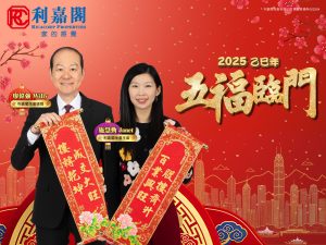 農曆新年將至,利嘉閣地產主席施慧勤小姐與利嘉閣地產總裁廖偉強先生特此向全港市民及所有尊貴客戶拜早年,恭祝大家「五福臨門,萬事勝意」。隨着香港步入減息周期,加上中央推出多項惠港政策,以及港府積極輸入人才,相信乙巳年香港必定有一番新景象,各行各業「福星高照」,樓市「步步高升」。