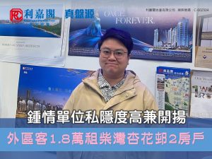利嘉閣地產杏花邨分行聯席董事黃銳平(Andrew)稱,該行客戶經理林泳君(Joyce)日前促成柴灣杏花邨48座高層5室的二手租賃成交個案,單位實用面積約547方呎,採2房間隔,外望開揚景觀。