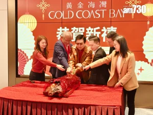 旭日國際今日(3日)大年初六於旗下屯門新盤「黃金海灣」售樓處舉行新春團拜活動,邀請舞獅團隊醒獅助興,集團主席蔡志明及地產開發部董事總經理李炳餘,帶領部門仝人出席活動,並主持隆重點睛儀式。現場有逾百名地產代理參與,場面熱鬧。