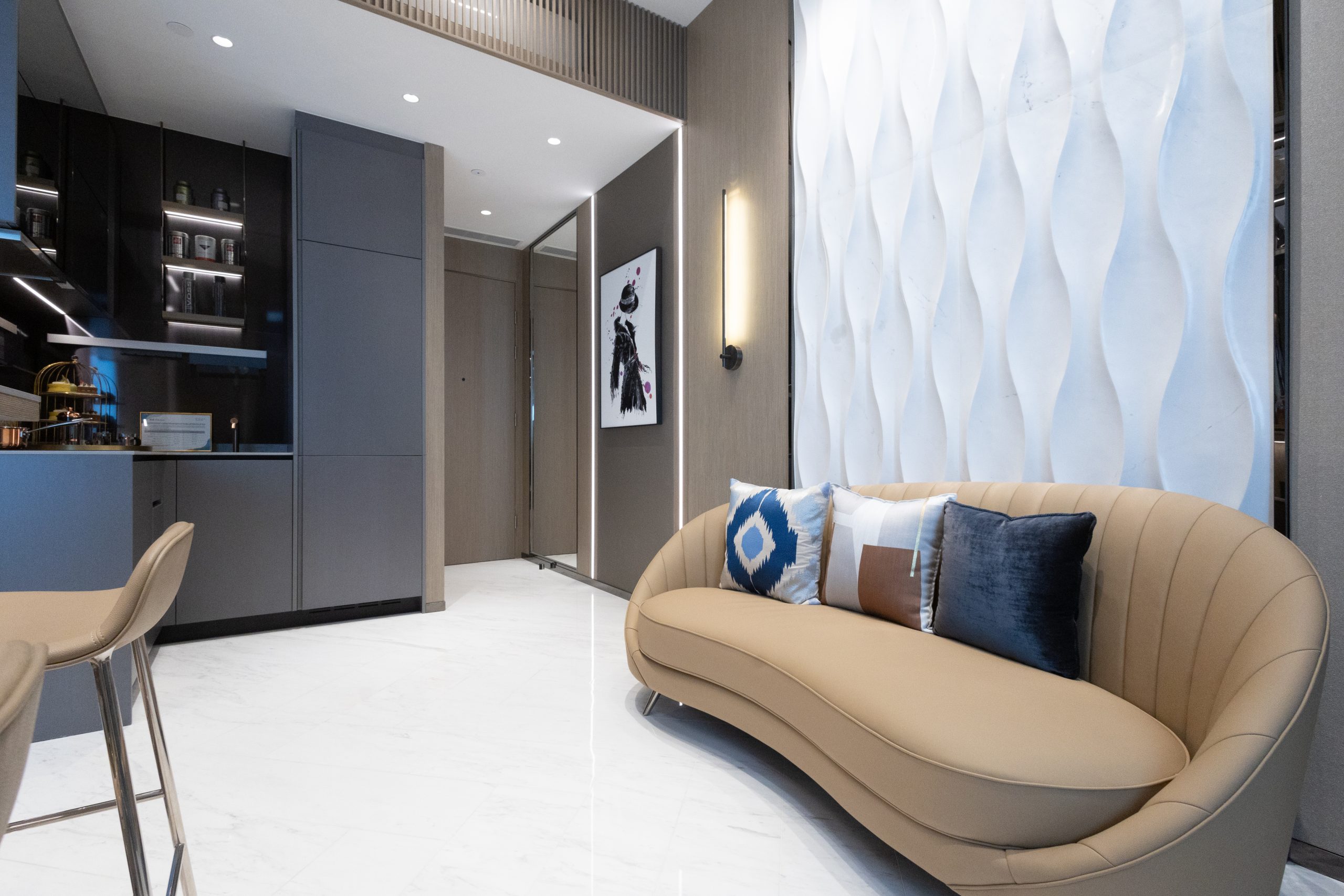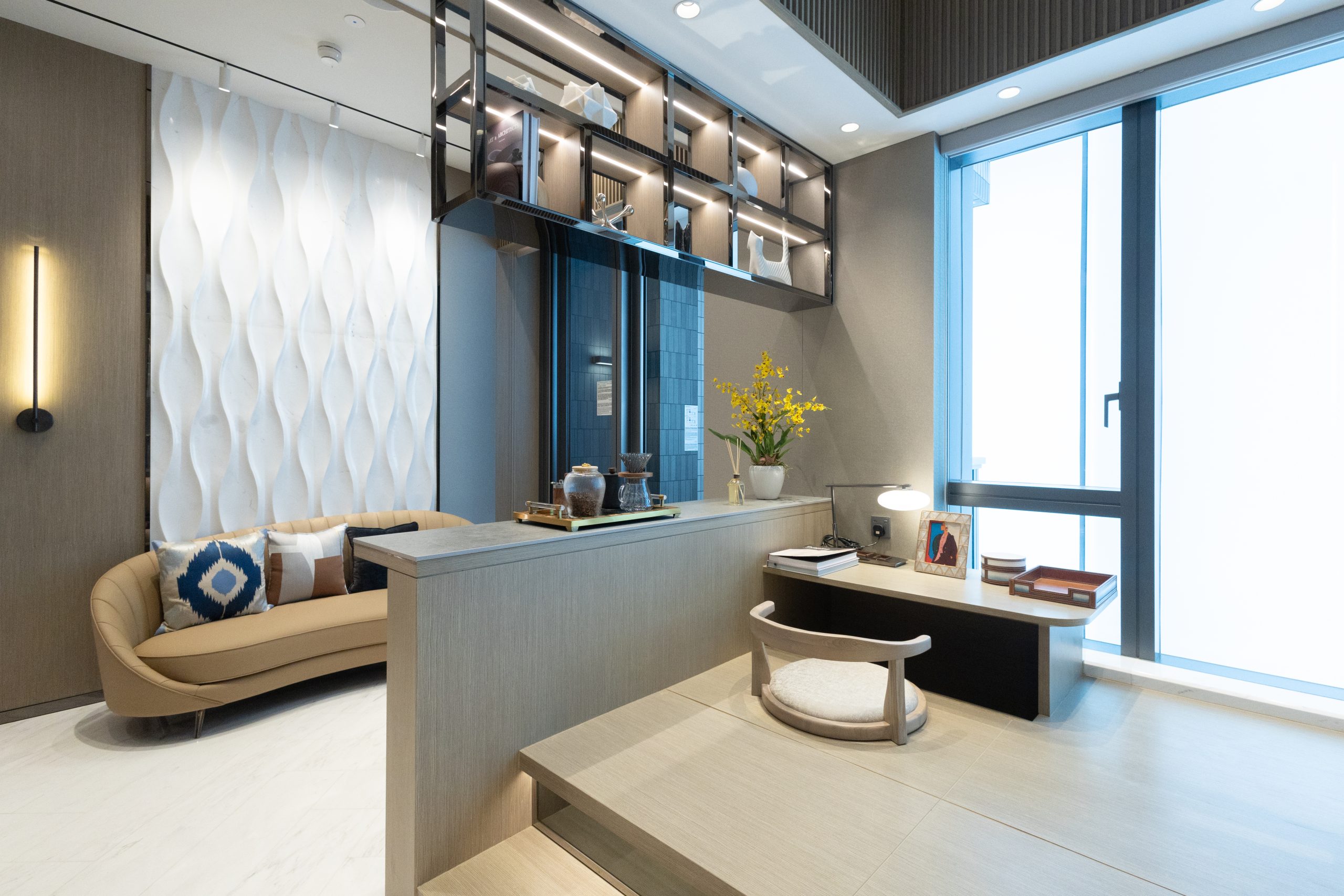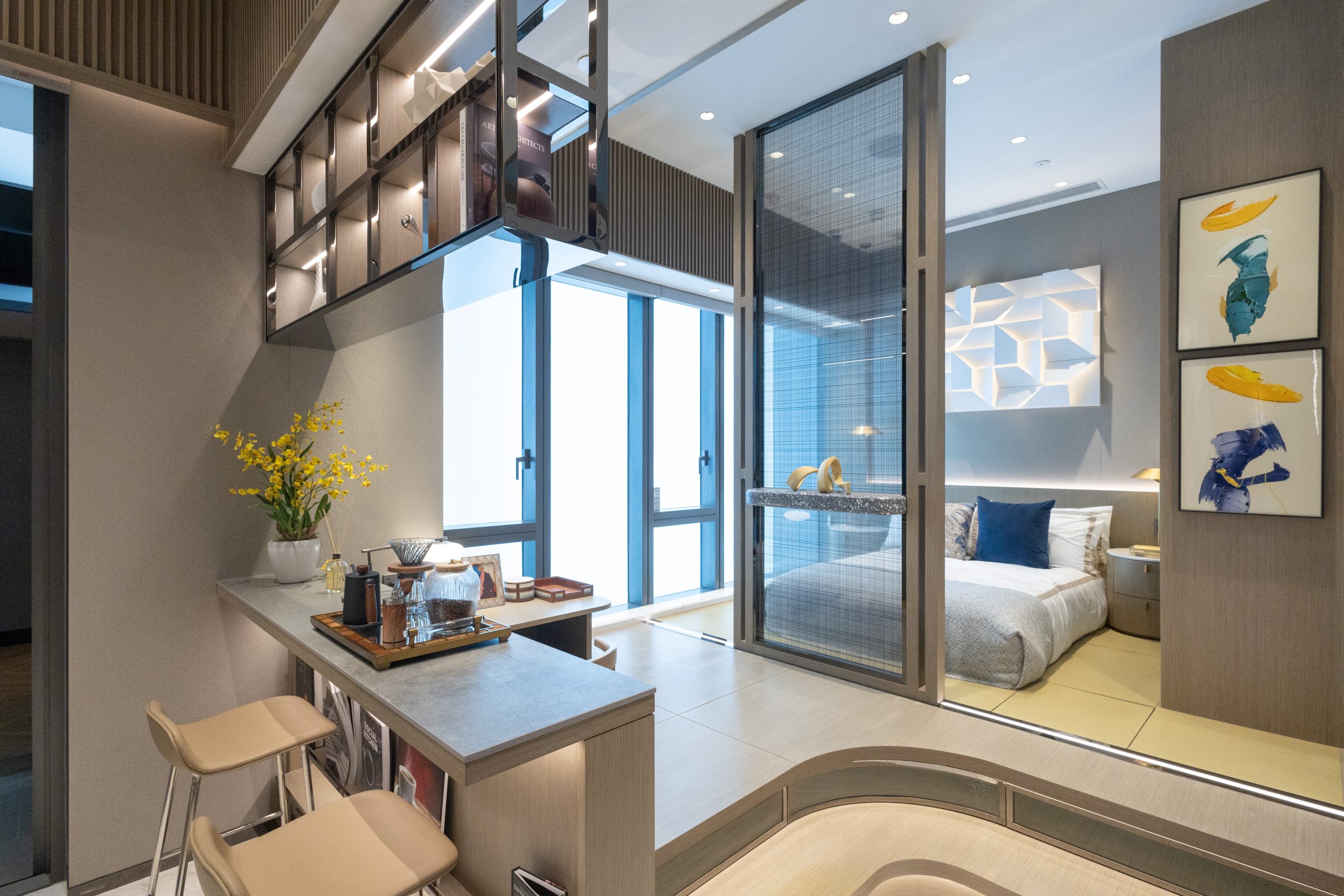 發展商同樣備有以第1A座18樓H室為藍本搭建的無改動示範單位,開則方正實用,客飯廳長約5.4米,闊約2.4米,主人睡房長約3米,闊約 2.1米,讓戶主可靈活地擺放不同家具,結合單位的特高樓底,提升室內的空間感,並進一步進行室內設計。