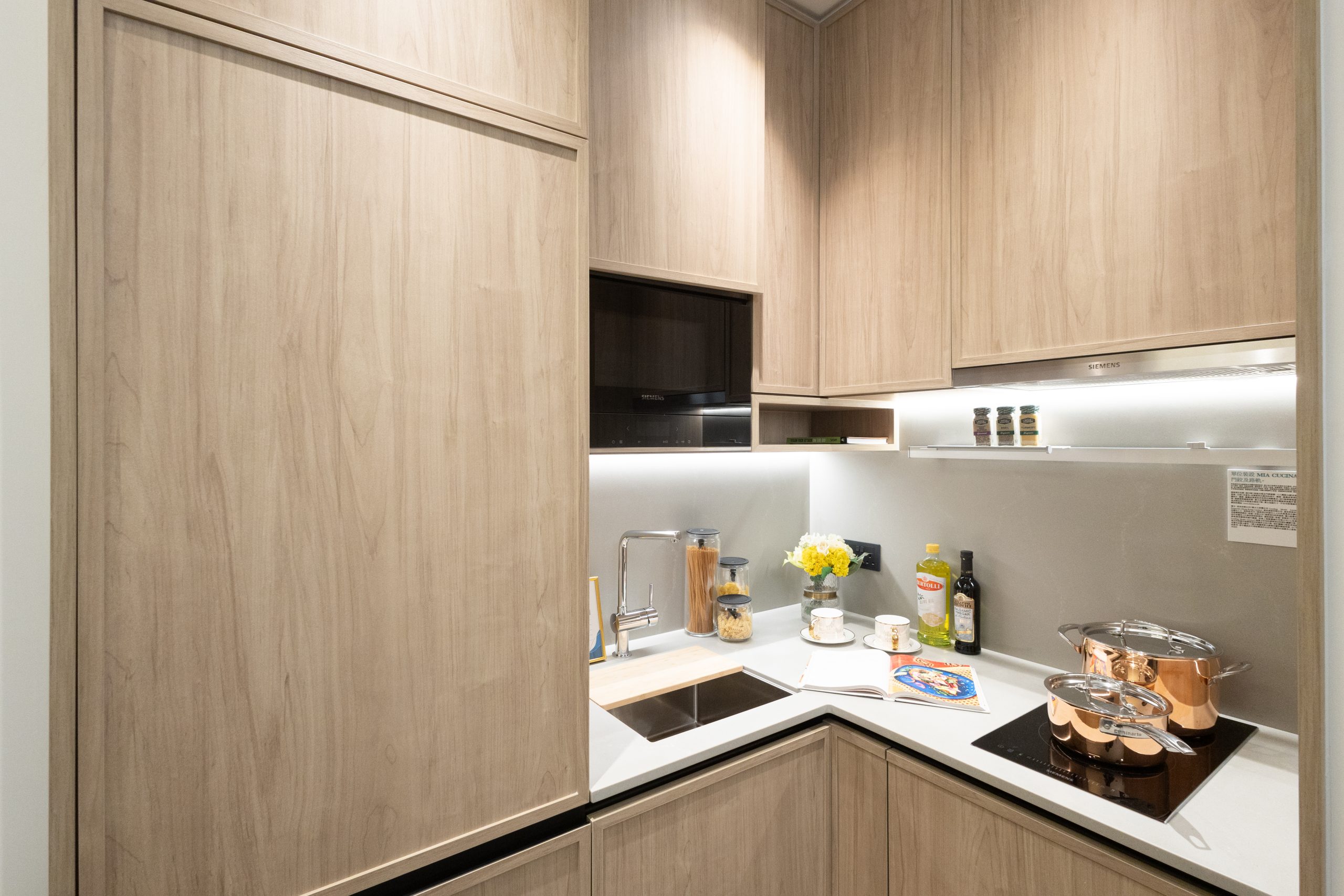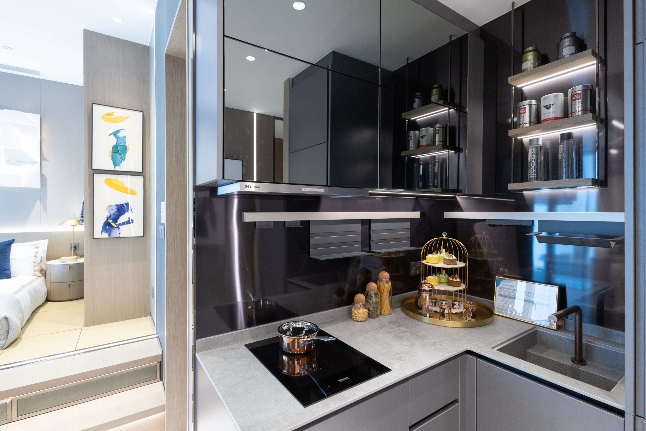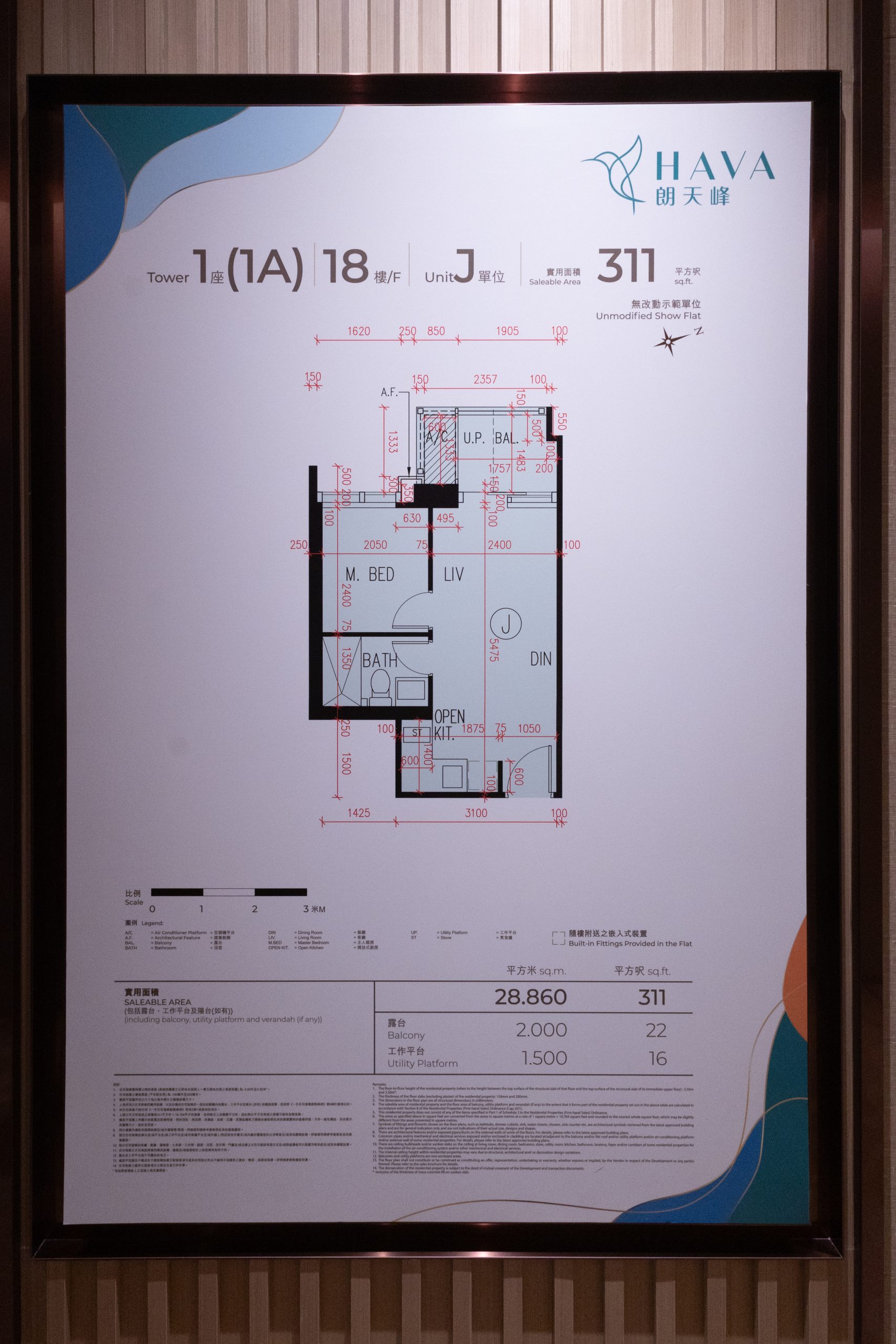 發展商同樣備有以第1A座18樓H室為藍本搭建的無改動示範單位,開則方正實用,客飯廳長約5.4米,闊約2.4米,主人睡房長約3米,闊約 2.1米,讓戶主可靈活地擺放不同家具,結合單位的特高樓底,提升室內的空間感,並進一步進行室內設計。
