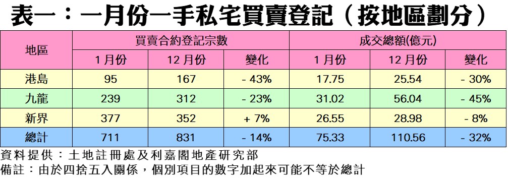 節慶淡市 1月一手私宅登記711宗 兩連跌 料2月持續窄幅徘徊 小陽春最快3月始現