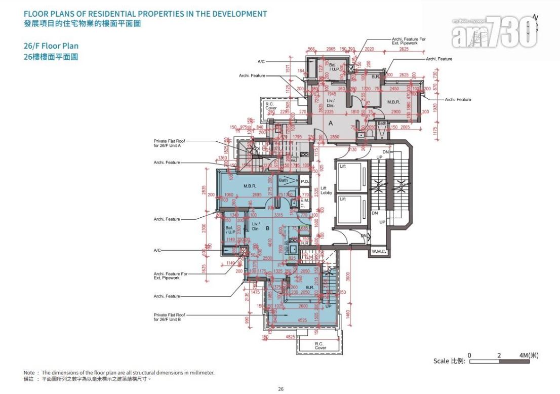 至於8伙特色單位,當中位於2樓的平台特色戶共5伙,頂層天台特色戶則設於26樓,提供2伙連內置樓梯及天台的特色單位。另外,項目於16樓D室設有平台,感覺猶如置身空中花園,將開揚景觀引入室內。