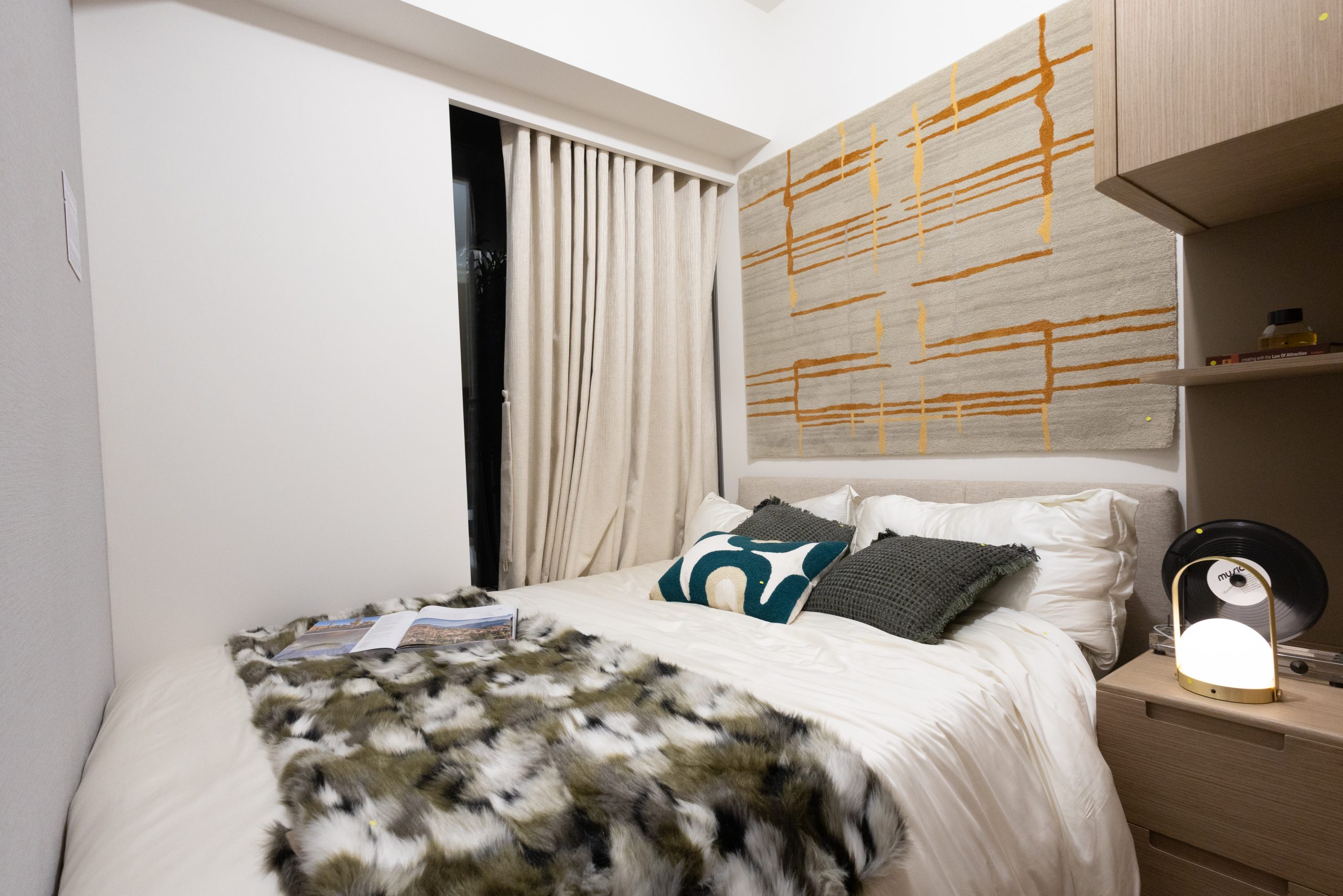 睡房間隔方正,焦點落於酒店式設計3合1衣櫃,巧妙地融合衣物收納、梳妝台及床頭櫃功能,將空間利用率最大化,同時彰顯優雅格調。梳妝櫈及床底亦設有儲物空間,靈活收納床品雜物。單位均配置一系列ARTIS配件如Artisan Switches造型匠心獨到,更設有三合一智能門鎖ArtisLock盡顯細節心思。