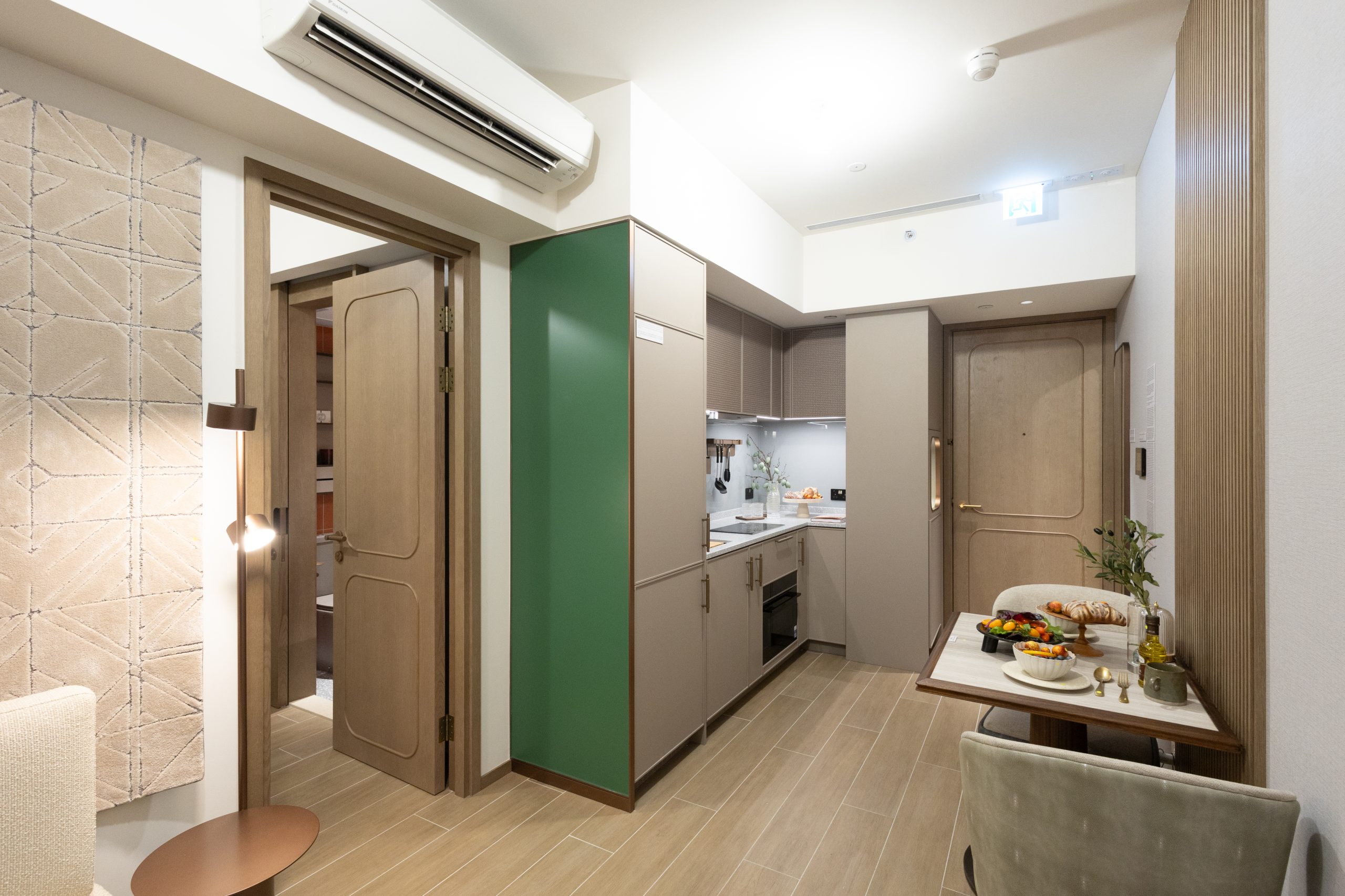 皇都示範單位|351呎連裝修一房採木系色調 設計優雅兼實用(多圖有片)|北角新盤