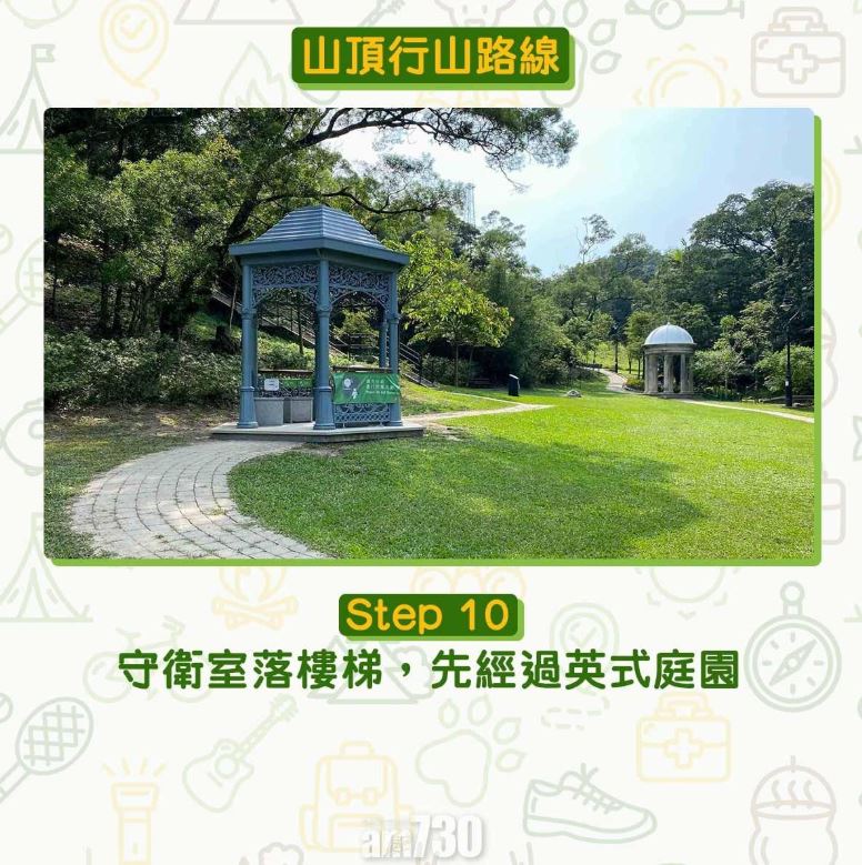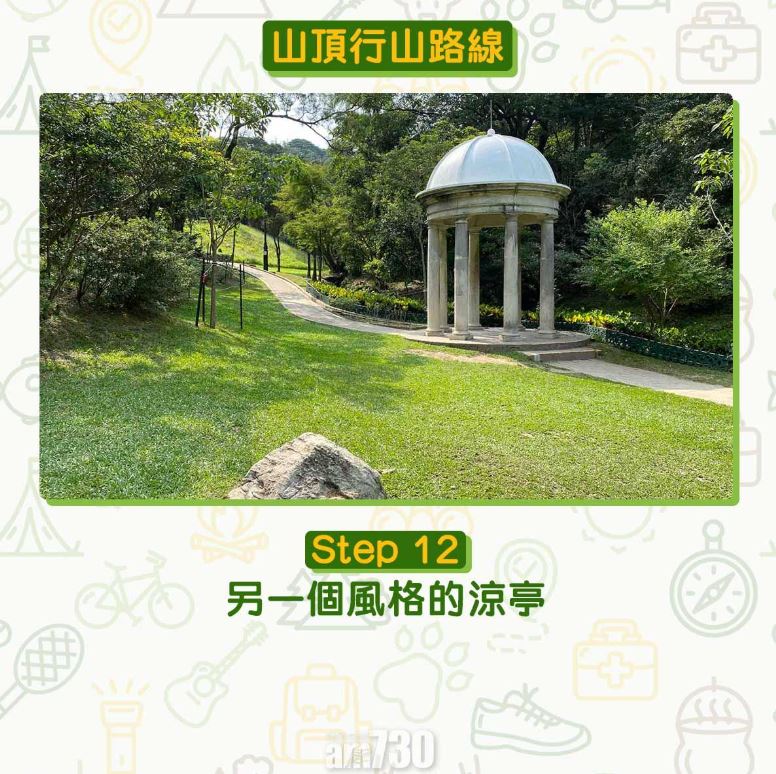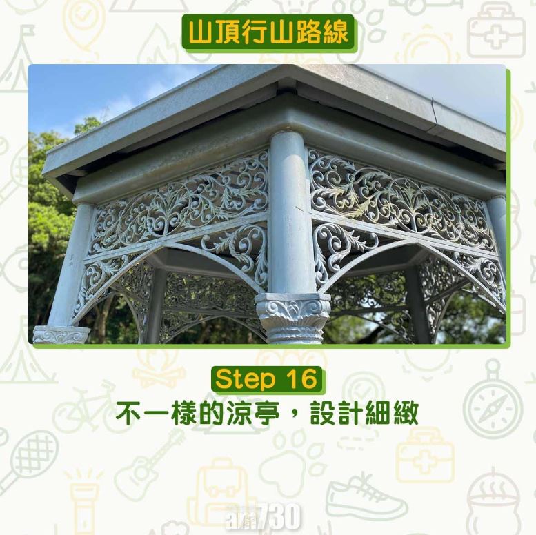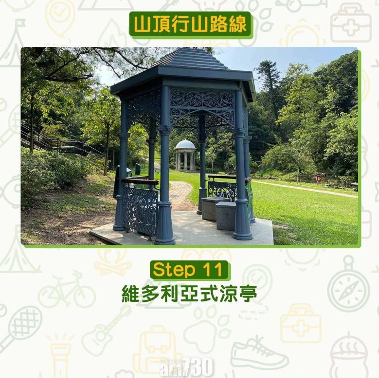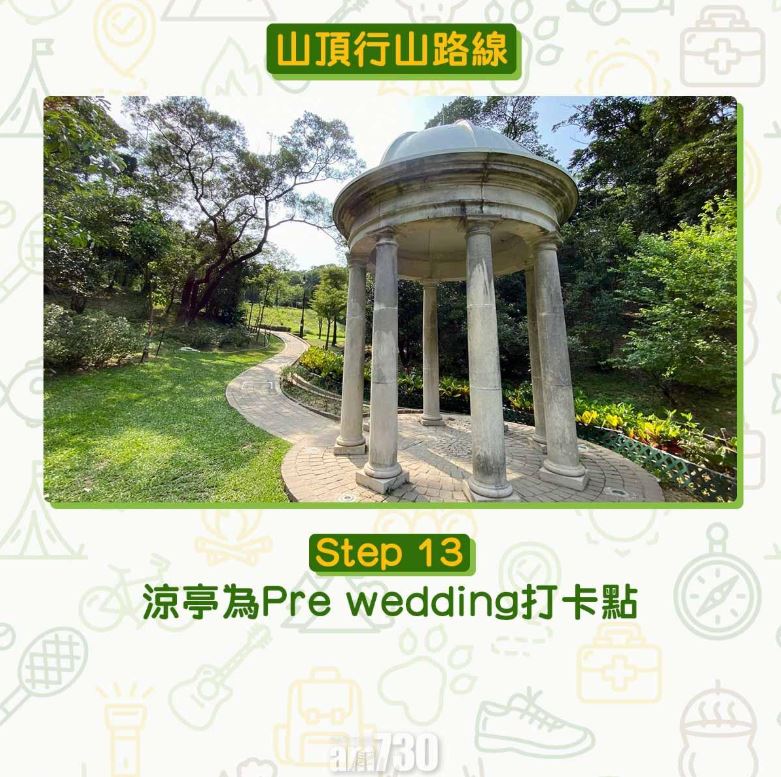 由凌霄閣步行到山頂公園只需30分鐘,全程柏油路,為初級行山路線。難度低又設施齊全加上利多利亞式涼亭,難怪不論拍拖、結婚相、郊遊都合適。