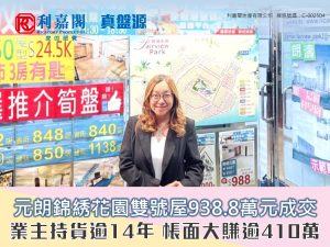 元朗錦綉花園雙號屋938.8萬元成交 業主持貨逾14年 帳面大賺逾410萬