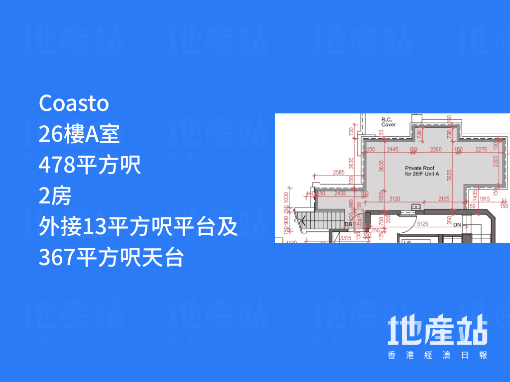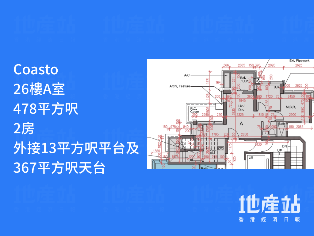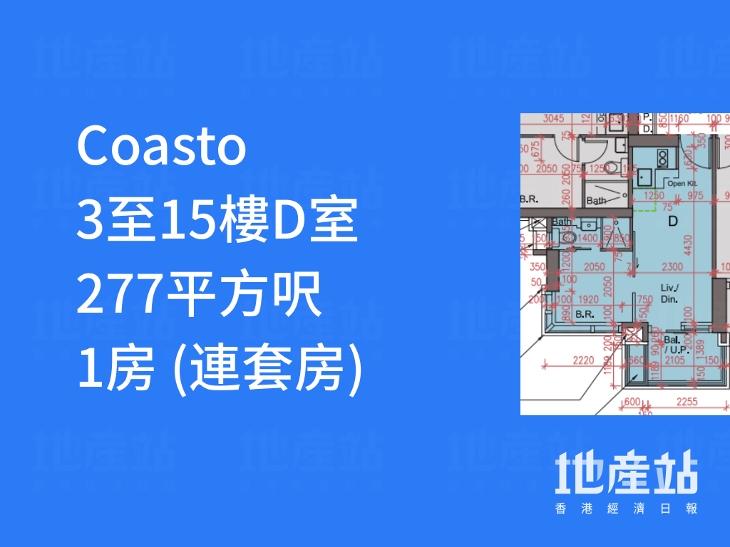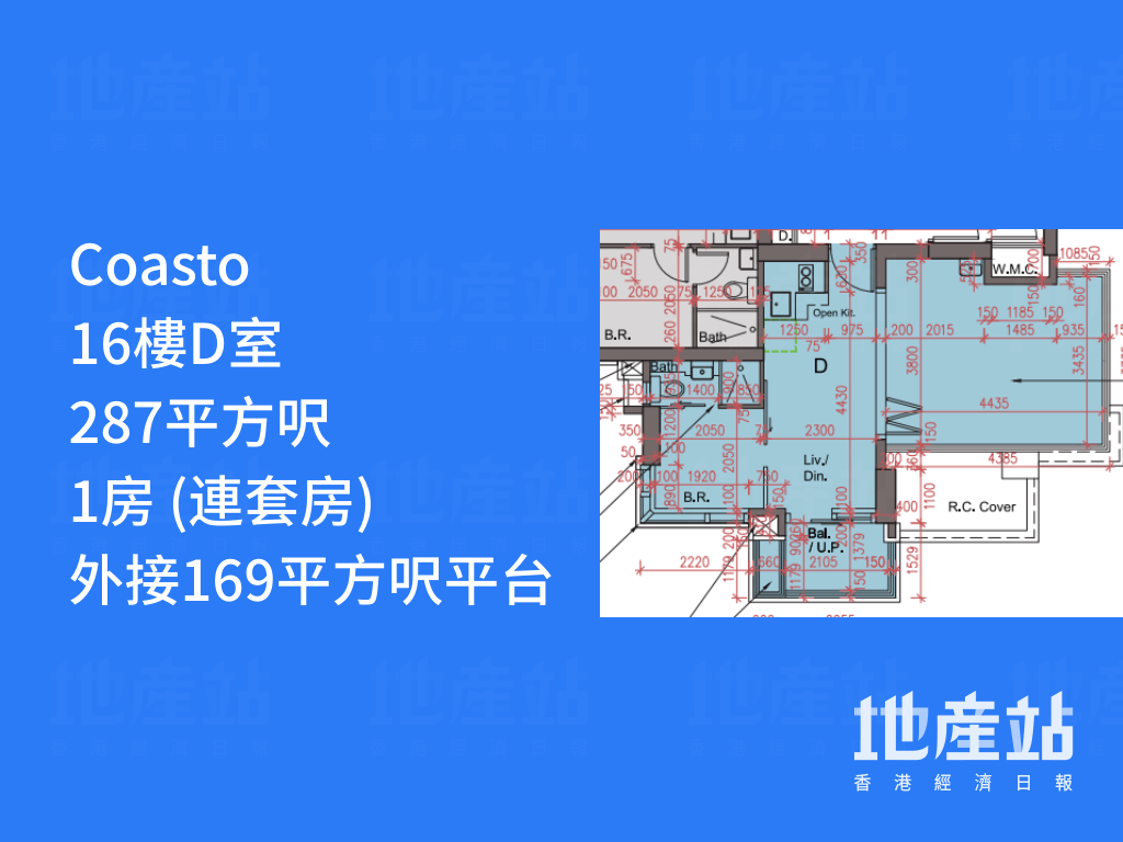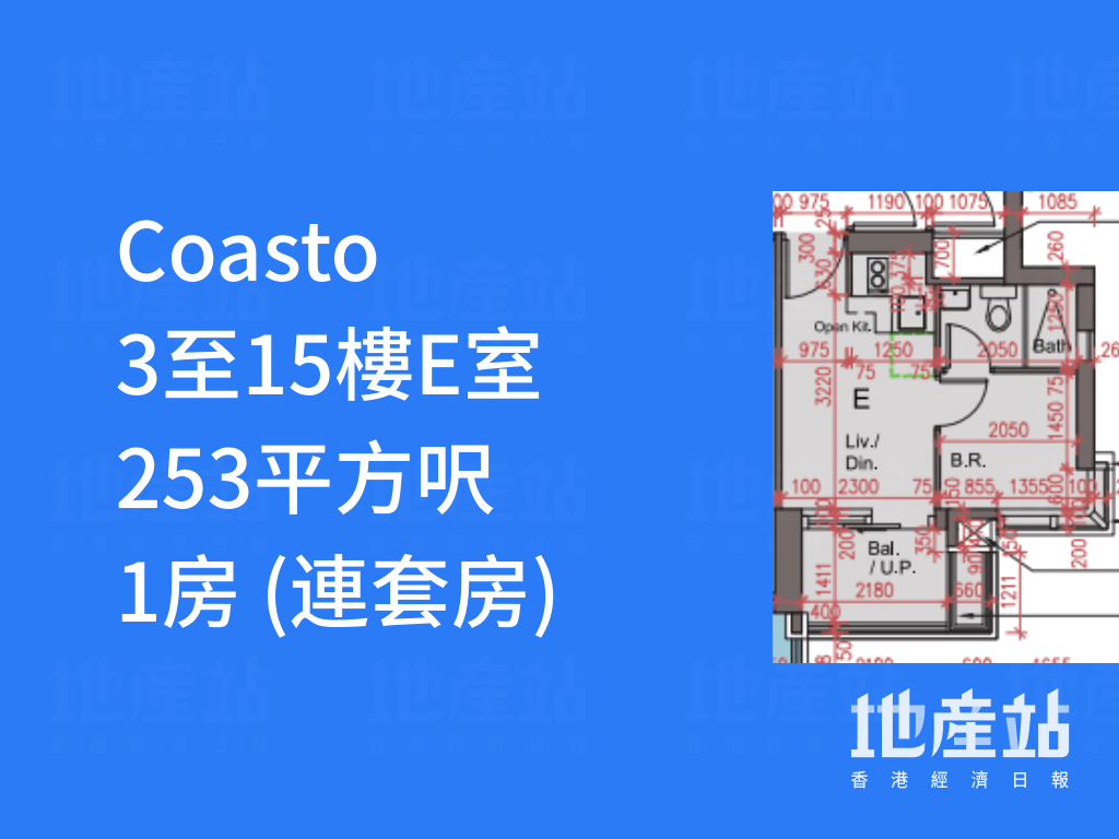 平面圖分析|Coasto 1房戶佔半成主打 有特色戶「平台大過屋」