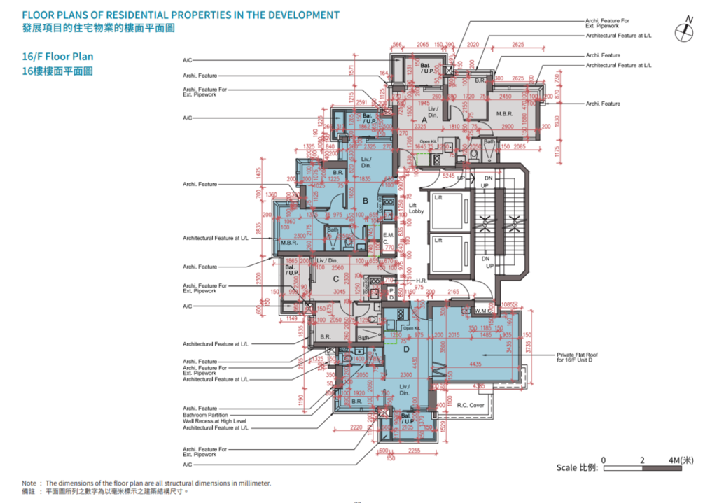 頂層連平台及天台戶則見於26樓A及B室,同為2房間隔。當中26樓A室,實用面積478平方呎,外接13平方呎平台及367平方呎天台,平台位於廚房旁邊,並設內置樓梯連接天台。至於26樓B室的實用面積則為459平方呎,睡房旁外接93平方呎平台,並設內置樓梯連接320平方呎的天台。