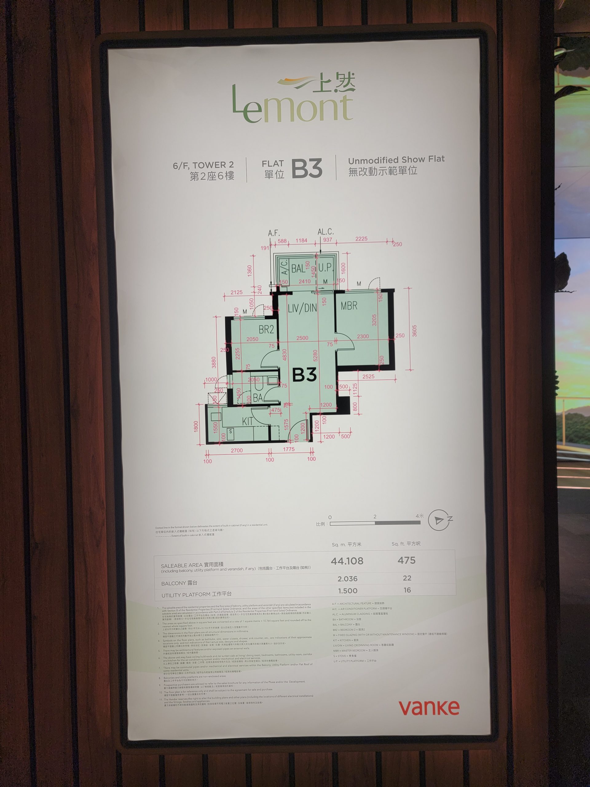 以第2座6樓B3室為藍本改造的兩房梗廚單位,實用面積475方呎,客飯廳連接共38方呎的特大露台連工作平台,廣納自然光線;長方形客飯廳最長處約6.4米,闊約2.5米,設計布局工整實用,兩側均配置電視插座,方便住戶靈活擺放傢俱。