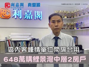 劉氏表示,新買家為區內客,早前經利嘉閣真盤源平台搵樓,見上述放盤即約代理睇樓。客人心儀單位間隔合用,景觀開揚,加上區內民生配套齊全,交通方便,睇樓後即進行洽購。業主原以670萬元放售,經誠意洽商後,最終以648萬元合理價成交,折合實用面積呎價約13,252元。