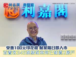 受惠100元印花稅 財案隔日即入市 首置客345萬購東涌裕東苑已補價2房戶