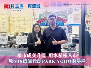 利嘉閣地產元朗-PARK YOHO分行高級經理鄧啟林(Kevin)表示,近期本港樓市氣氛好轉,一手及二手交投活躍,部分買家入市態度轉為積極。該行客戶經理陳秀丹(Candy)及物業顧問鄧啟賢(Pyke)共同促成元朗PARK YOHO 1C期1B座中層C室的二手成交個案,單位實用面積約531方呎,採2房兼開放式廚房設計,望內園泳池景。