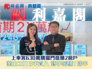 上車客630萬購瓏門低層2房戶 業主2013年買入 轉手帳賺1球半